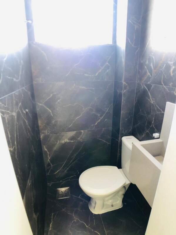 Área de serviço ampla, com piso em cerâmica e banheiro de empregada;