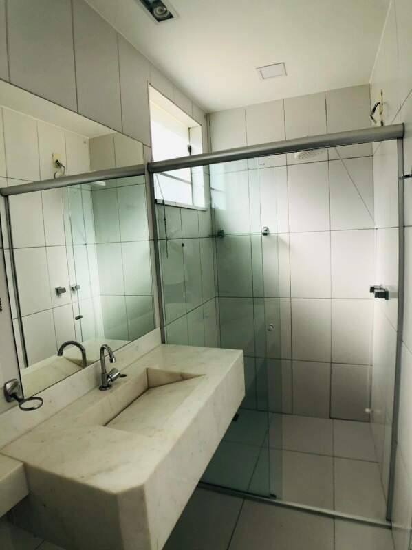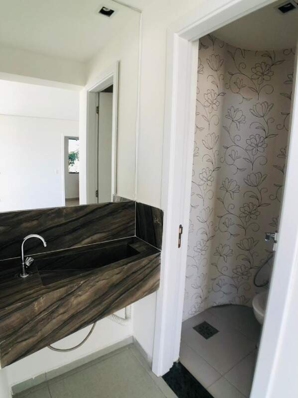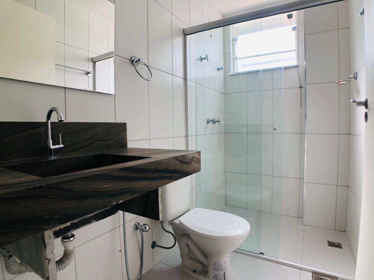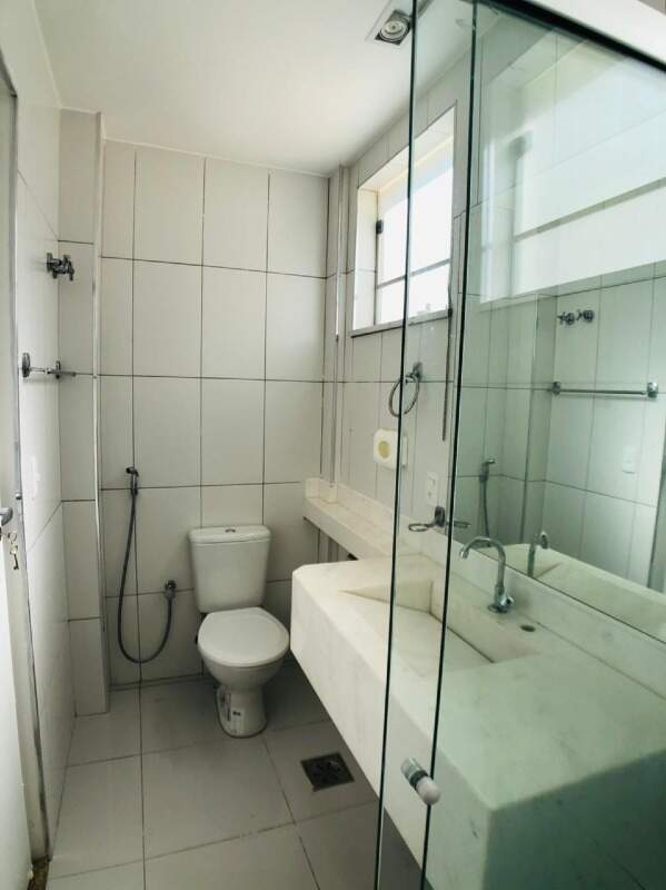 Banheiros (social e da suíte) com bancadas em granito, box em blindex, espelho e piso em cerâmica;