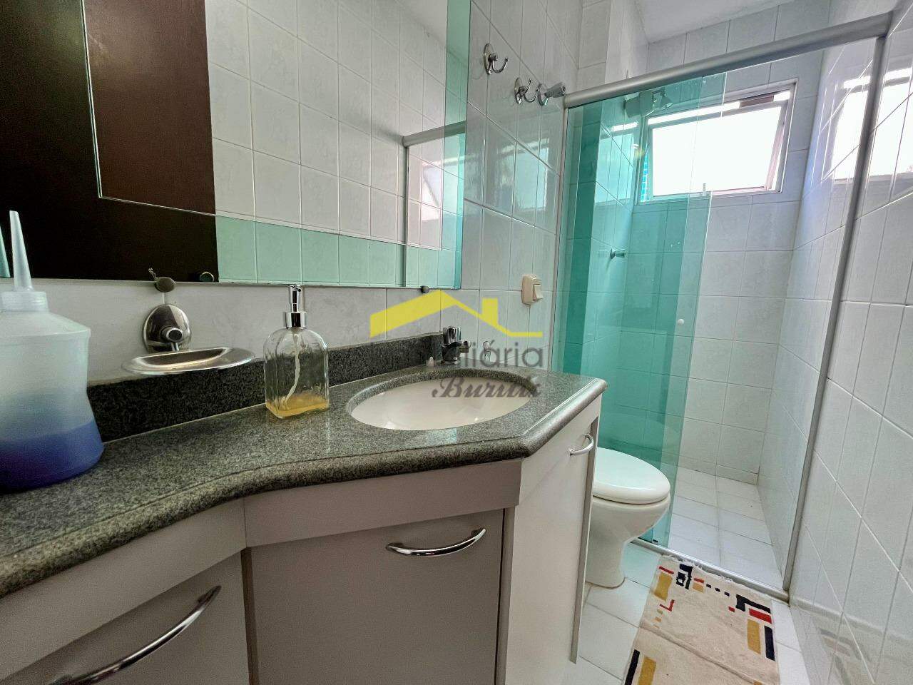 Os banhos social e suíte estão equipados com armários, oferecendo organização e praticidade. A cozinha possui armários planejados, e a área de serviço é separada, com o banheiro de serviço convertido em despensa, garantindo mais espaço e funcionalidade.