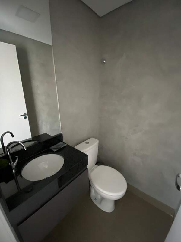 Lavabo: Armário e espelho. Textura cimento queimado.