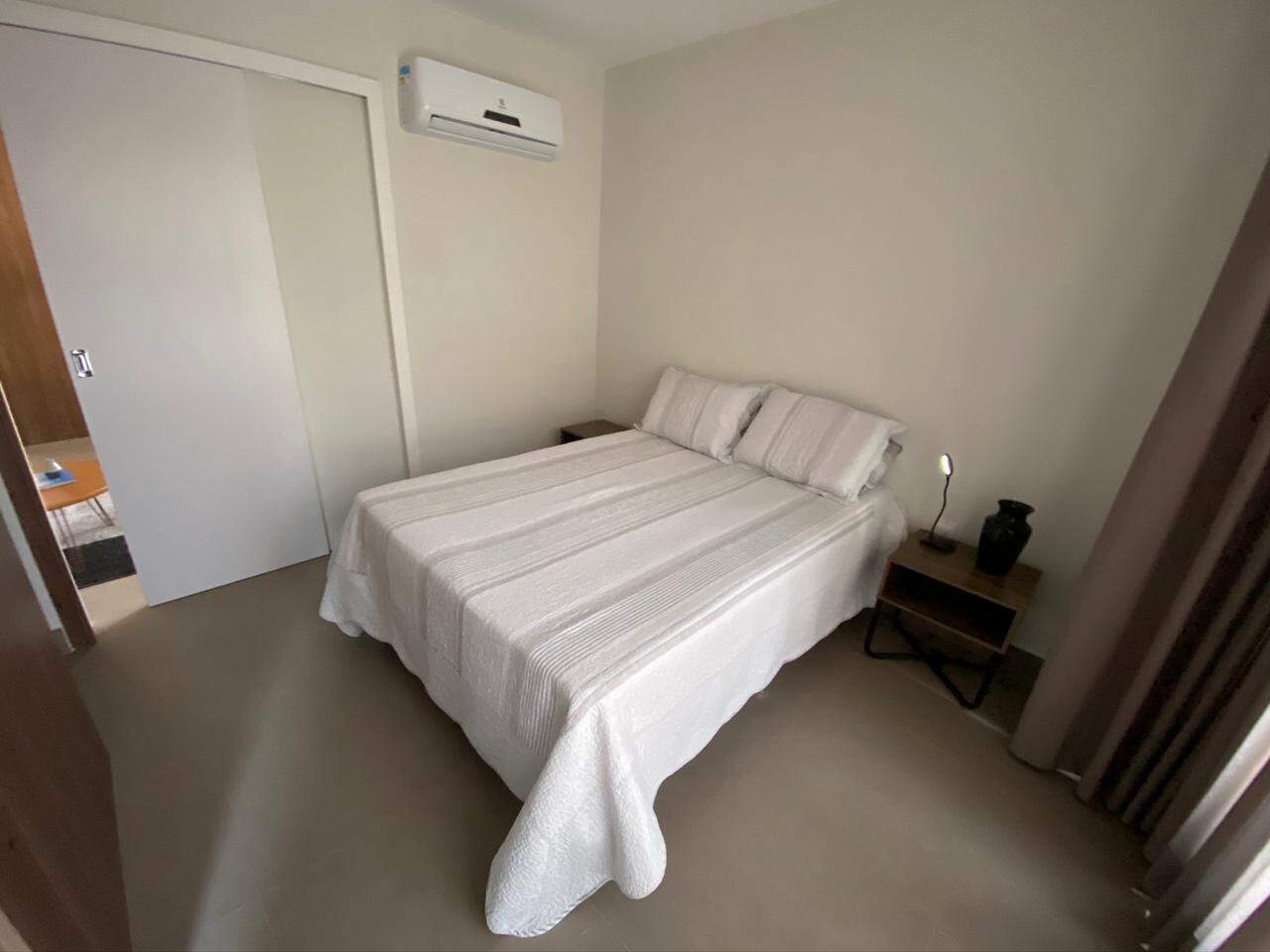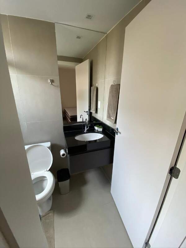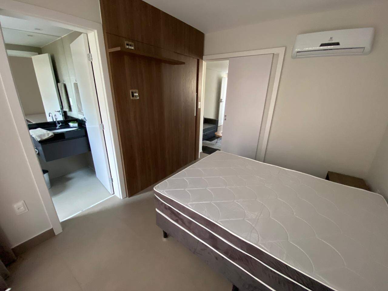 O apartamento de 1 quarto é mobiliado, com 1 vaga de garagem, suíte com closet, lavabo, sala, cozinha americana e área de serviço. Todo piso do apartamento é em porcelanato.