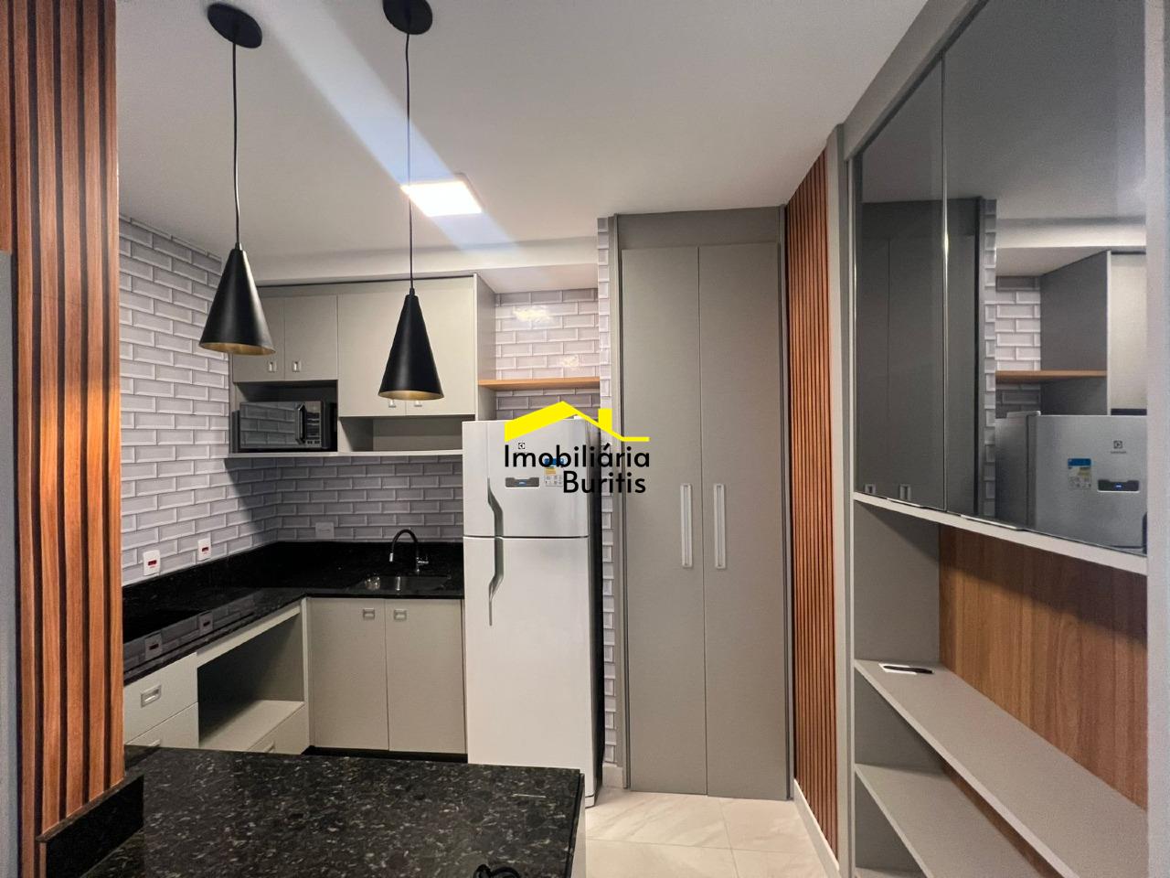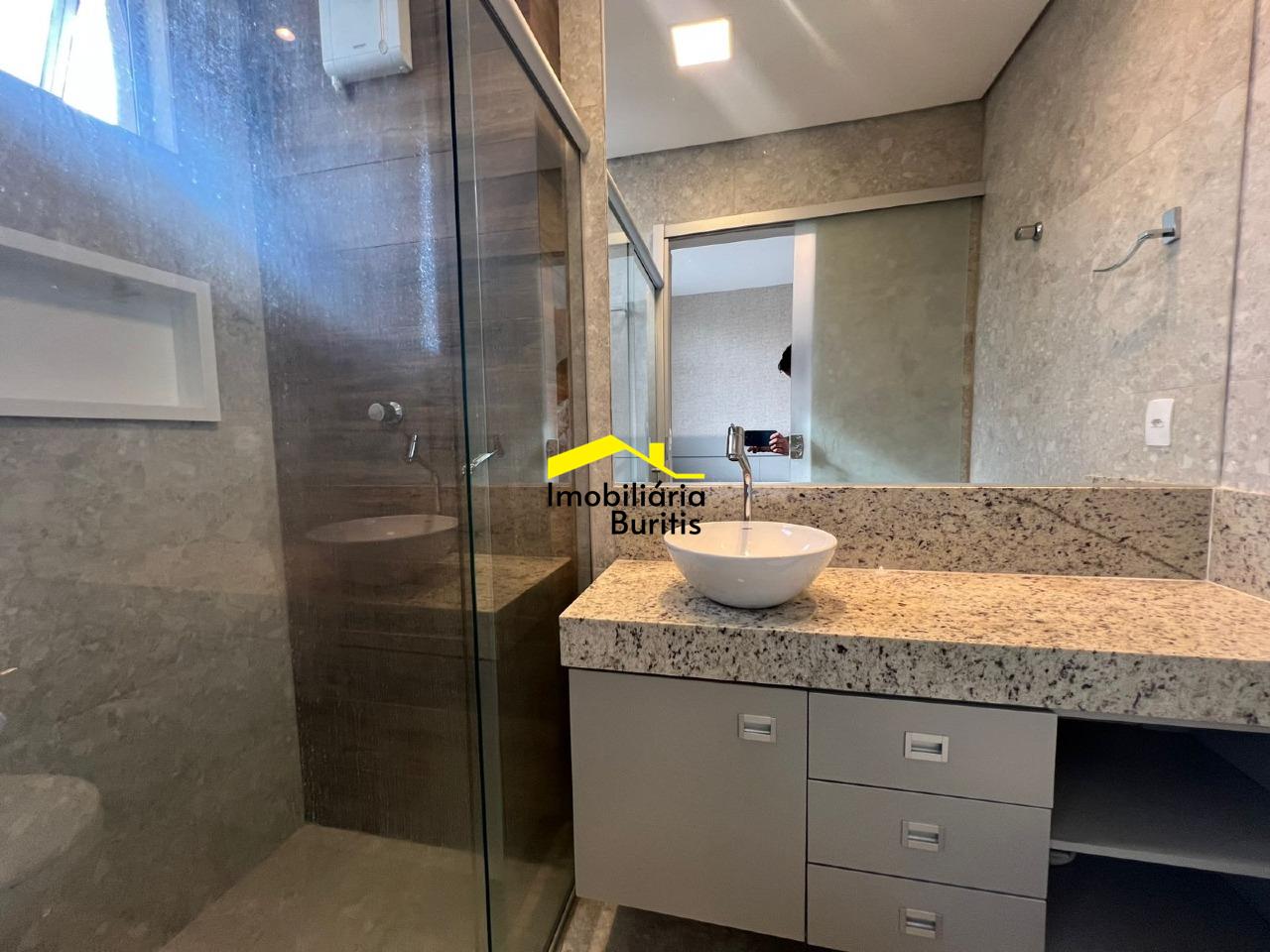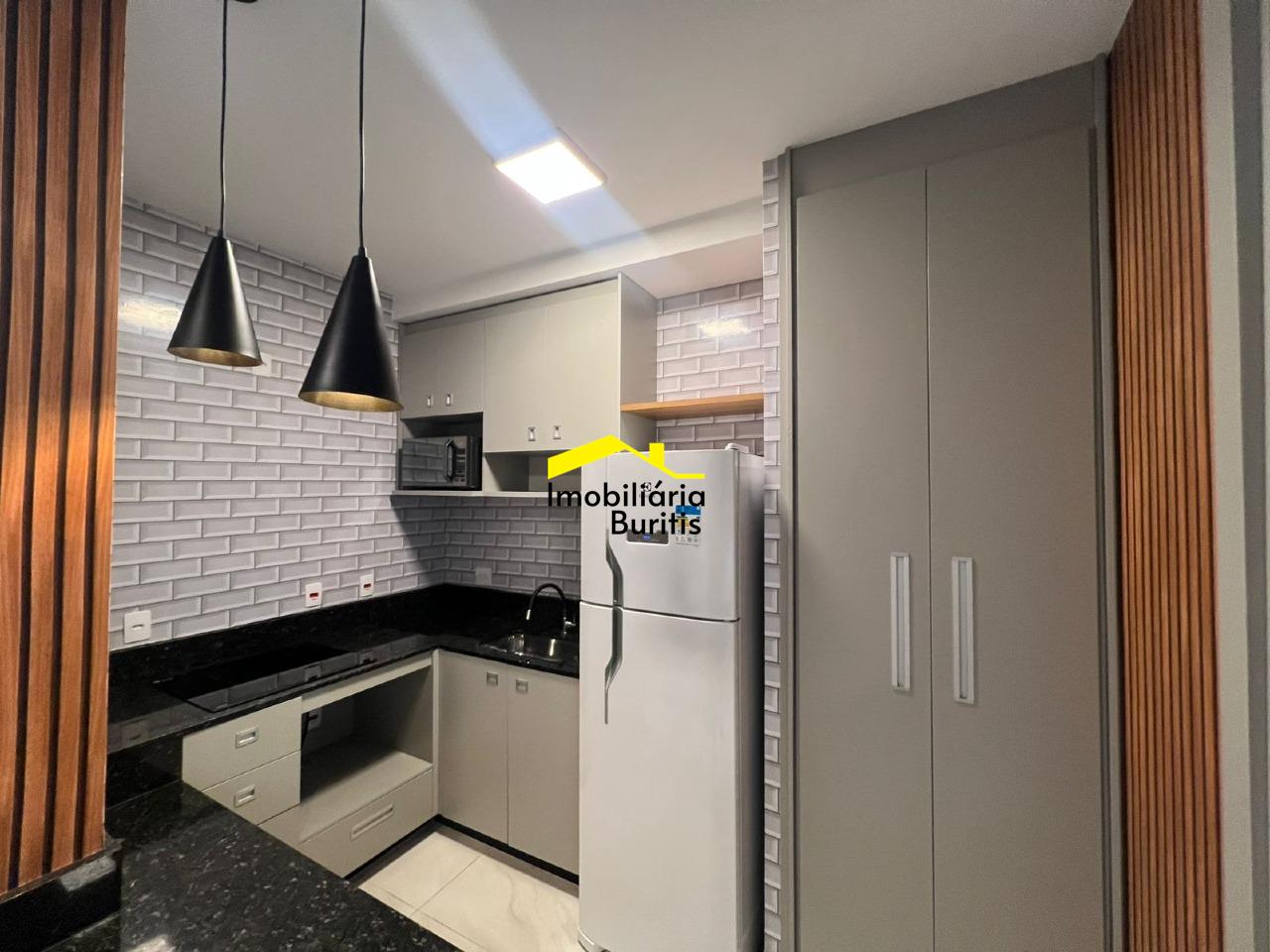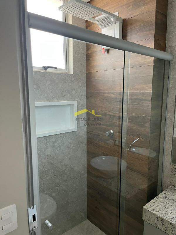Sala com piso em porcelanato, painel de TV, lavabo; 01 suíte com piso em laminado, armários planejados, painel de TV, ar condicionado; banho da suíte com piso em porcelanato, bancada em granito, blindex, armários; cozinha com piso em porcelanato, bancada em granito, armários.