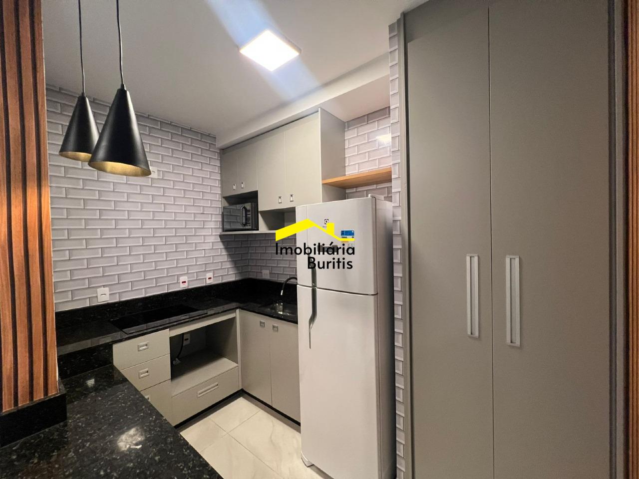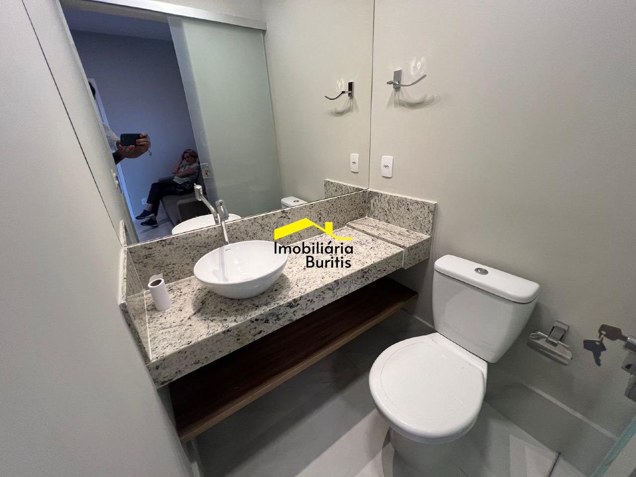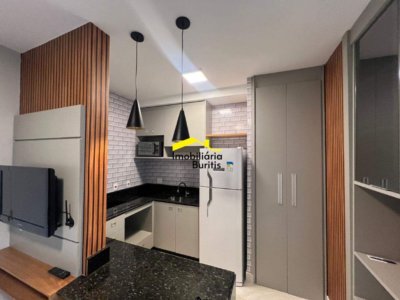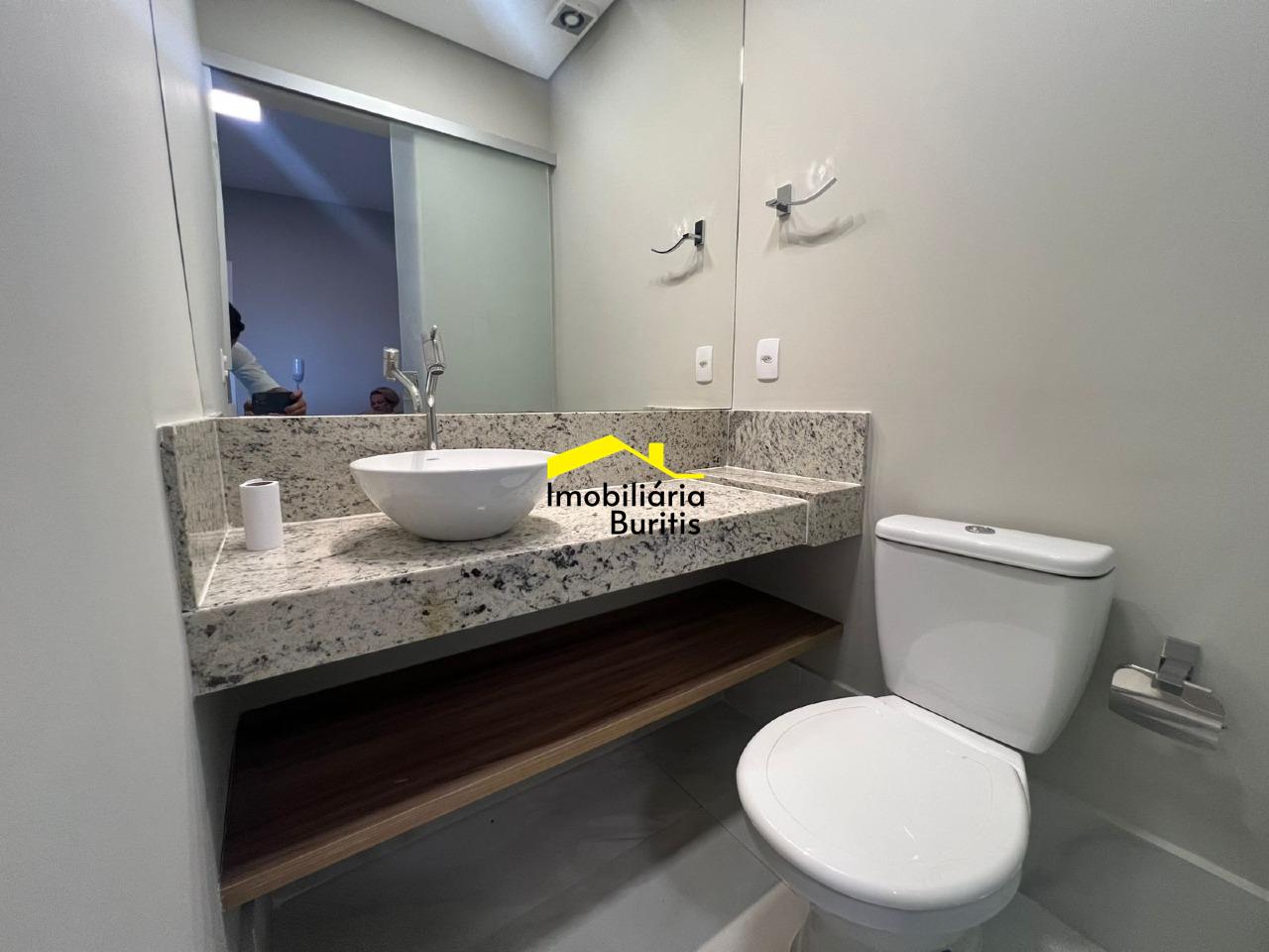Sala com piso em porcelanato, painel de TV, lavabo; 01 suíte com piso em laminado, armários planejados, painel de TV, ar condicionado; banho da suíte com piso em porcelanato, bancada em granito, blindex, armários; cozinha com piso em porcelanato, bancada em granito, armários.