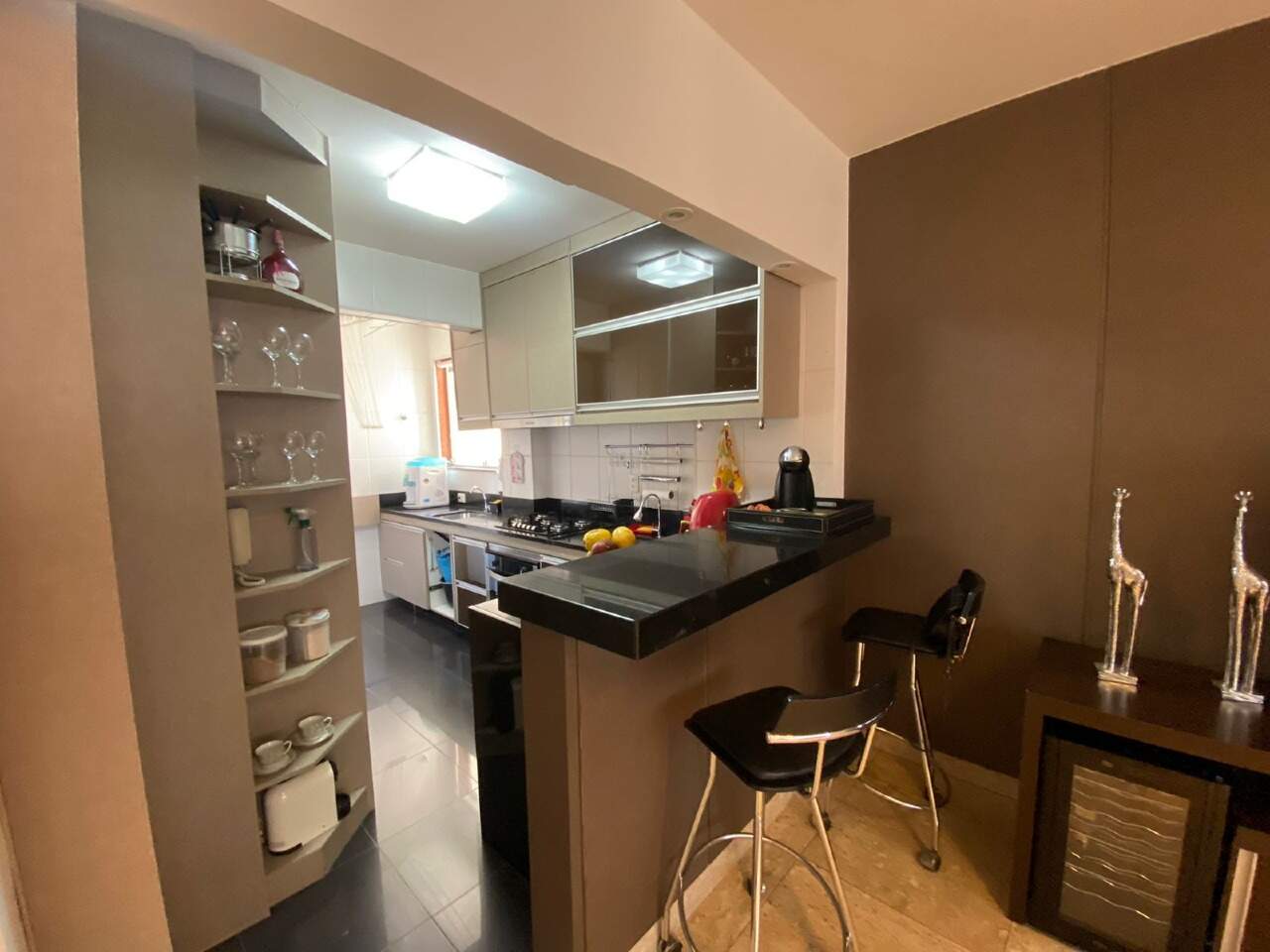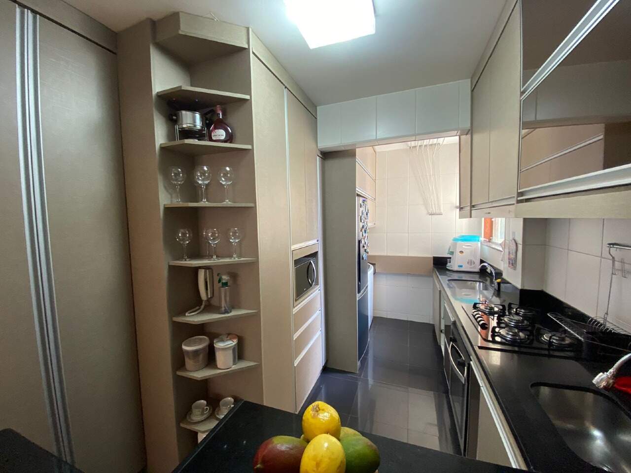 Apartamento 03 quartos sendo 01 suíte, todos os quartos com piso em laminado, armários planejados; banho social e suíte com piso e bancada em granito, blindex, armários; sala para 02 ambientes com piso em mármore, teto rebaixado em gesso, iluminação planejada, varanda incorporada; cozinha americana com piso e bancada em granito, armários planejados; área de serviço.