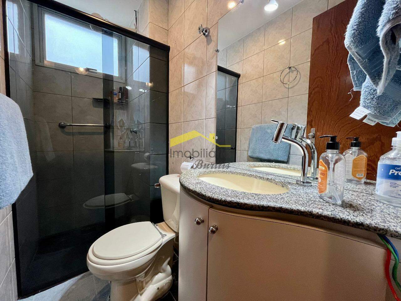 Banheiro social: com armário planejado e acabamento de qualidade.