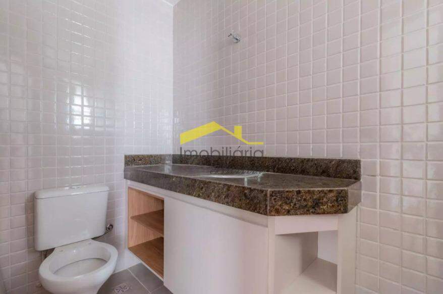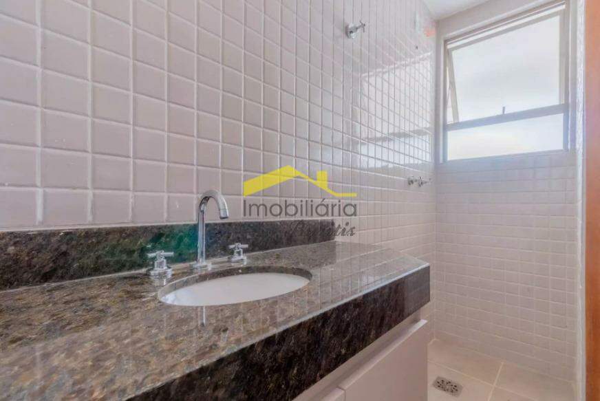 Banhos com piso em porcelanato e bancadas em granito.
