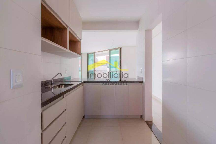 Cozinha com armários, bancada em granito e piso em porcelanato.