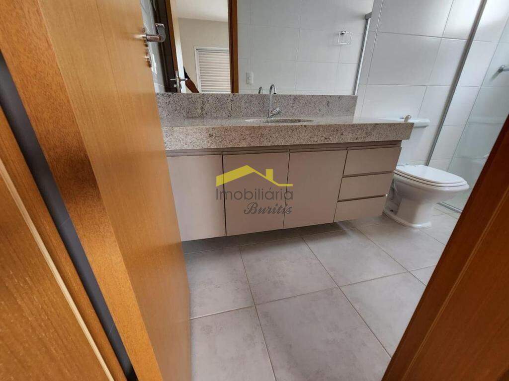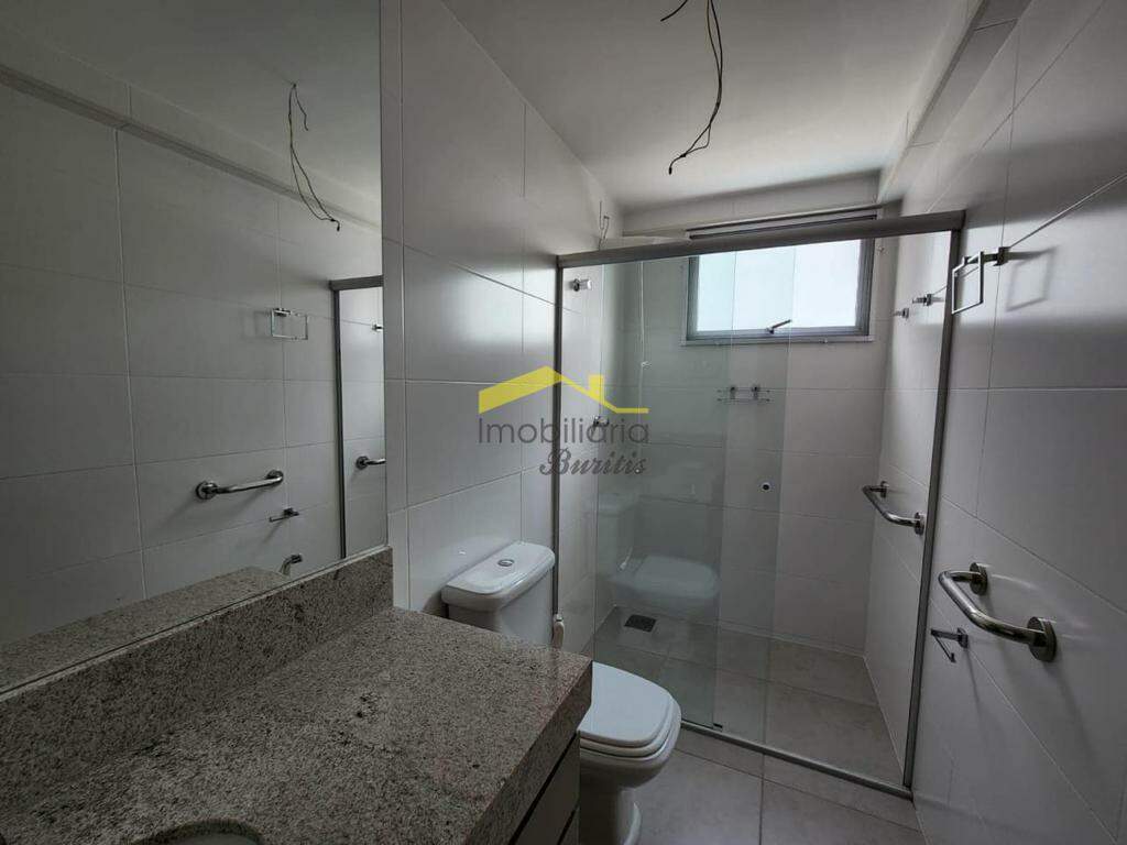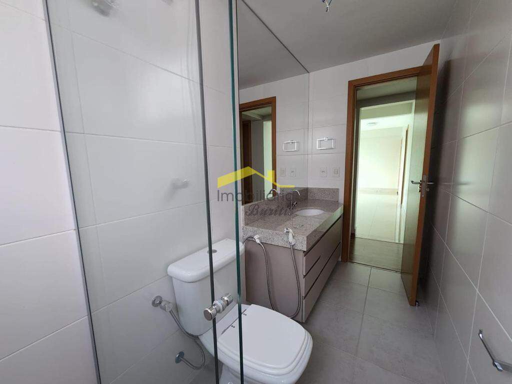 Banho Social e Suíte, com armário sob bancada em granito, box blindex e piso em porcelanato;