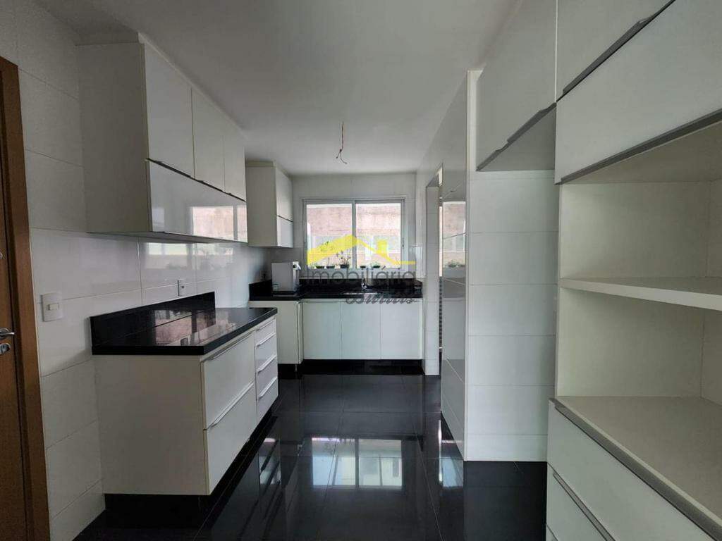 Cozinha toda planejada com muitos armários e bancada em granito;