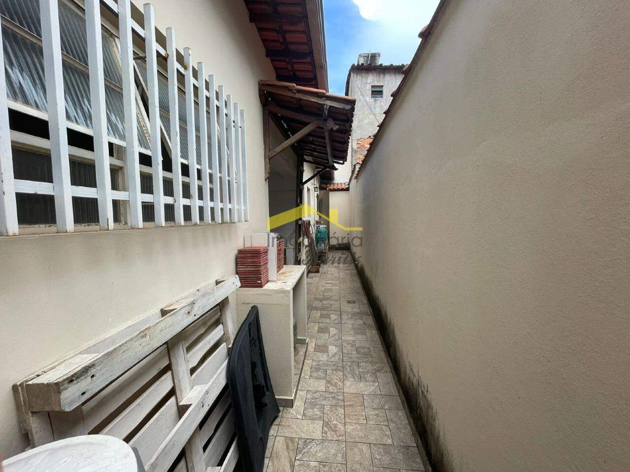 Amplo quintal parcialmente coberto, com ducha e corredor lateral.