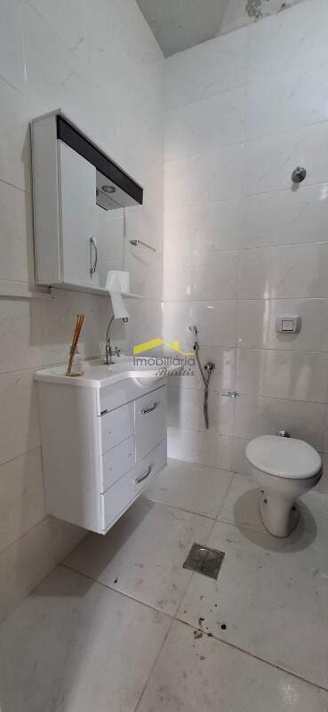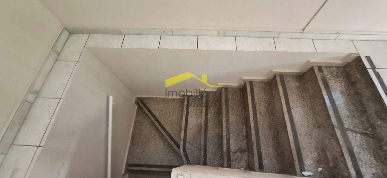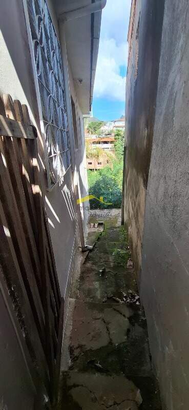 Casa com telhado colonial, varanda, uma sala com piso em cerâmica, três quartos com piso em cerâmica, banheiro social com armários, espelho e box em blindex, e piso em cerâmica, escadaria de alvenaria revestida em cerâmica, uma sala com piso em cerâmica, varanda com piso em cerâmica, um quarto com piso em cerâmica, banheiro social com armários, espelho e box em blindex, e piso em cerâmica, cozinha com armários e piso em cerâmica, área de serviço com piso em cerâmica.