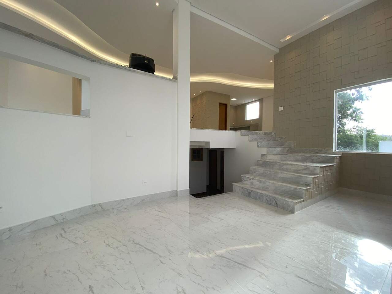Excelente casa com 230m2 construídos em 2 pavimentos, fino acabamento, terreno de 500m2, sendo o 1º pavimento Nível da rua Sala ampla, para vários ambientes, com acabamento de luxo, piso em porcelanato, projeto de iluminação, rebaixamento em gesso, parte da sala com pé direito duplo, uma cozinha de apoio em conceito aberto, com bancadas em granito e lavabo decorado de muito bom gosto. ;