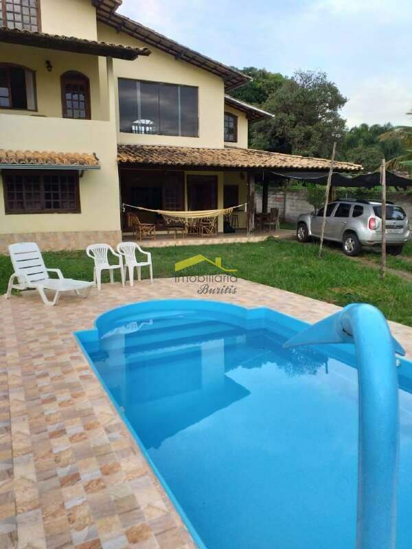 Casa com piscina, área de churrasco e ducha. Terreno amplo com vagas de garagem para mais de 7carros.