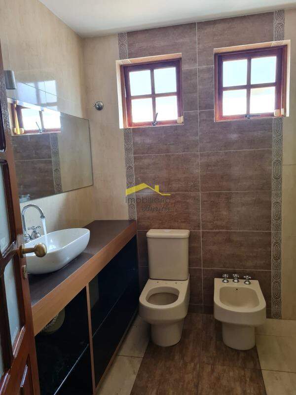 2 Banheiros com Armários e Detalhes em Madeira: Os banheiros da casa são elegantemente decorados, com armários para armazenamento, bancadas em madeira e box para banho.