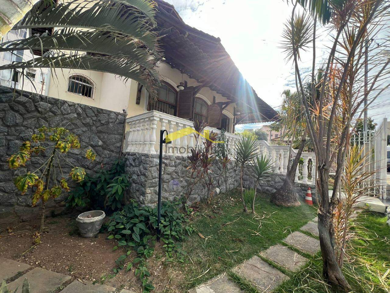 Casa com telhado colonial, recuada, gradeada, ajardinada, 2 pavimentos, garagem para 6 carros, pequena piscina 2x3, lote 300,00 m2, área construída de 280,00 m2 área e churrasqueira.