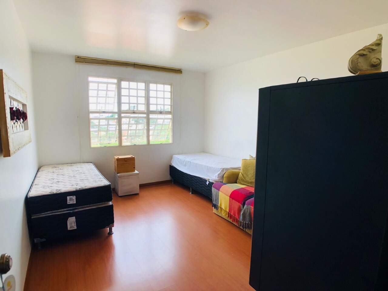 02 quartos com piso em tabua corrida, sendo 01 com armarios e 01 suíte.