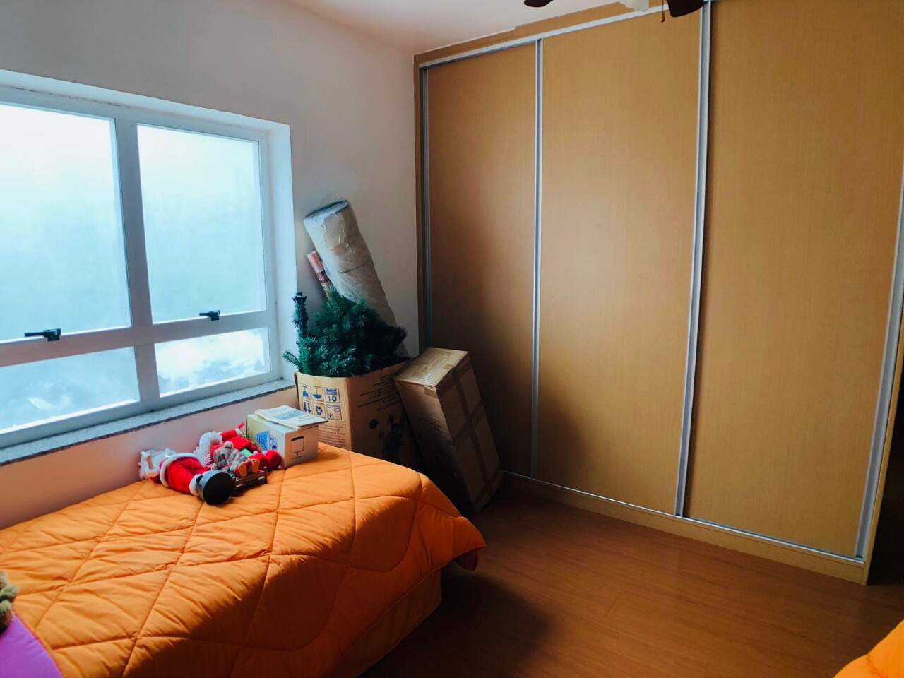 02 quartos montados com armarios, piso em laminado de madeira, sendo 01 suíte.