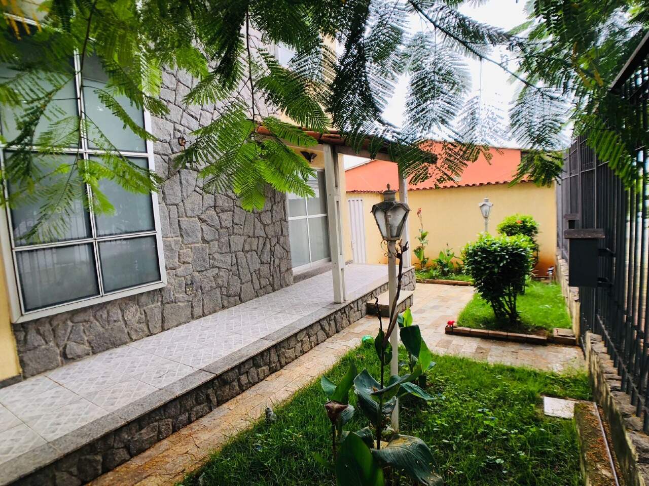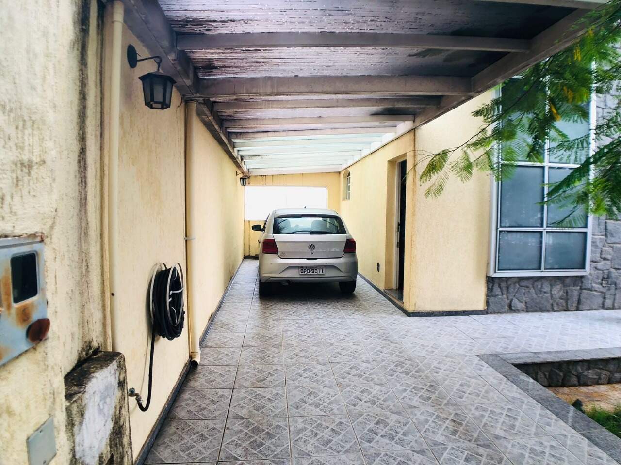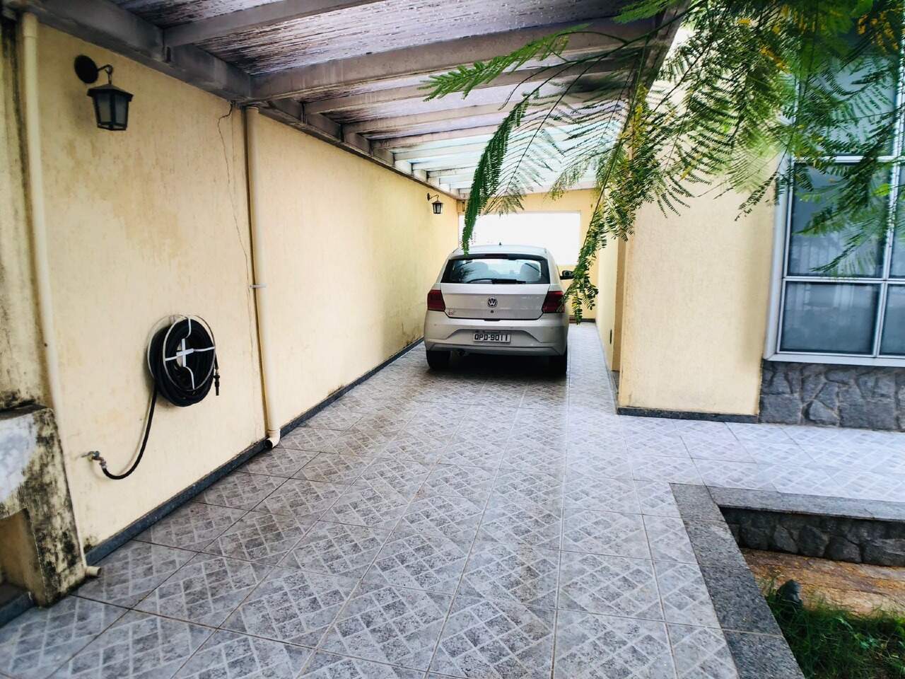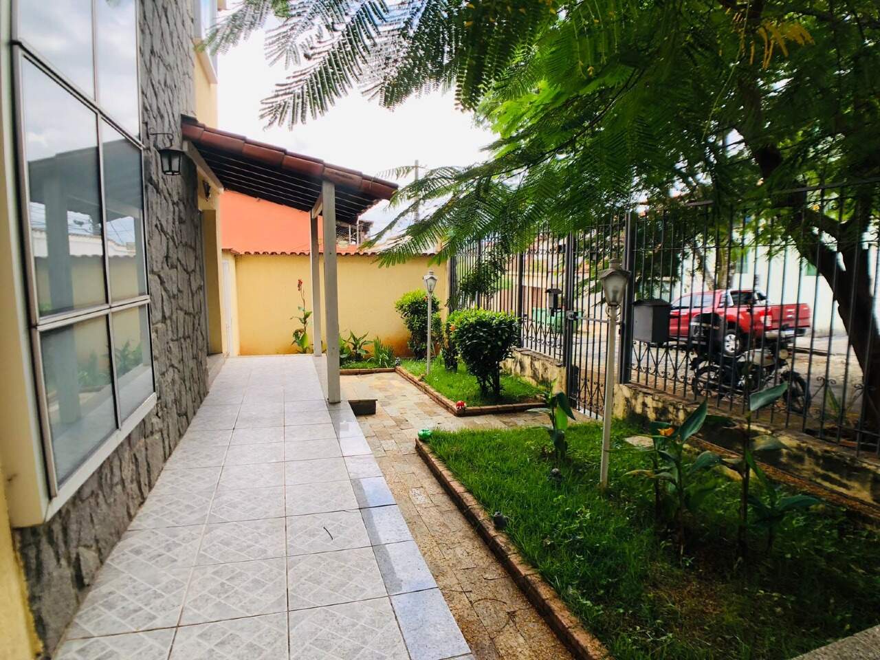 Entrada com jardins e garagem para 02 carros cobertos.