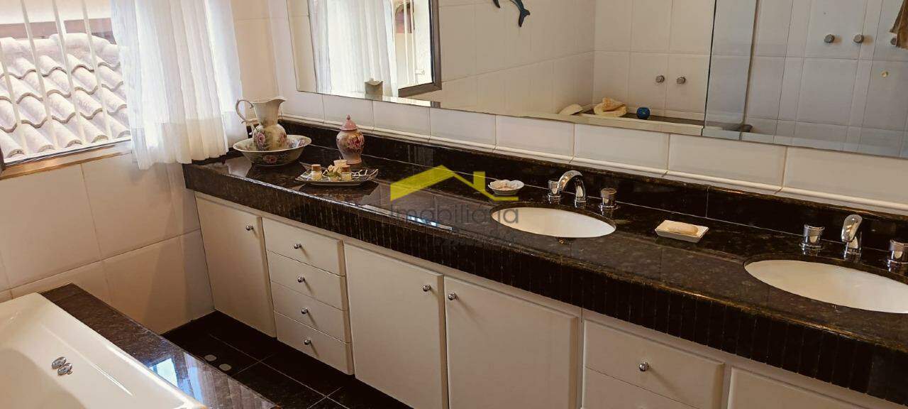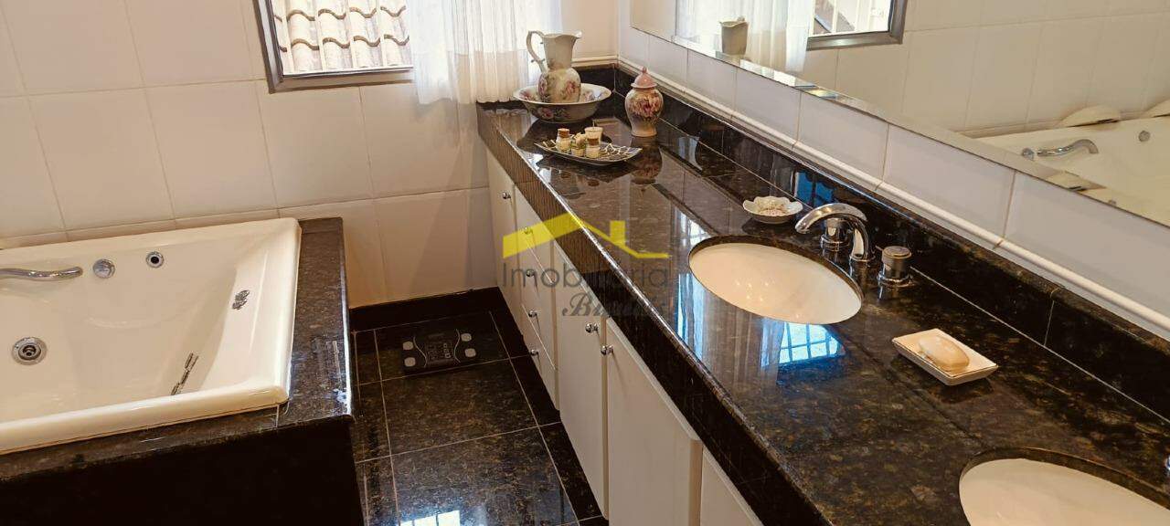 Terceiro pavimento: 4 quartos em tacão com armários, sendo 1 suíte máster com closet e banheira de hidromassagem, 1 suíte júnior e 2 semi-suítes. Banheiros em granito com bancadas em granito, armários, box em vidro temperado e espelhos. Rouparia.