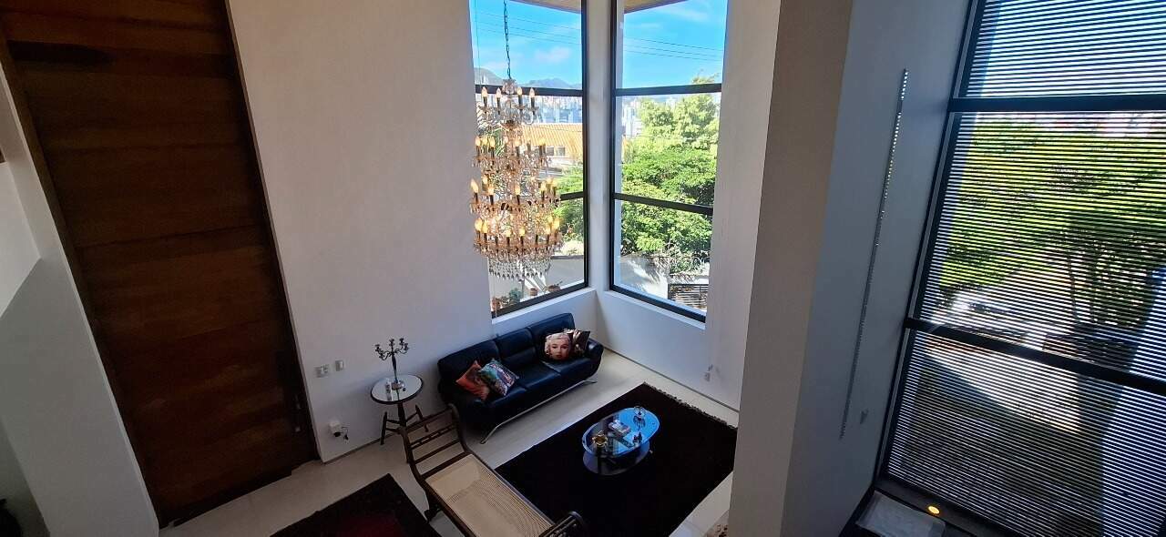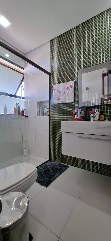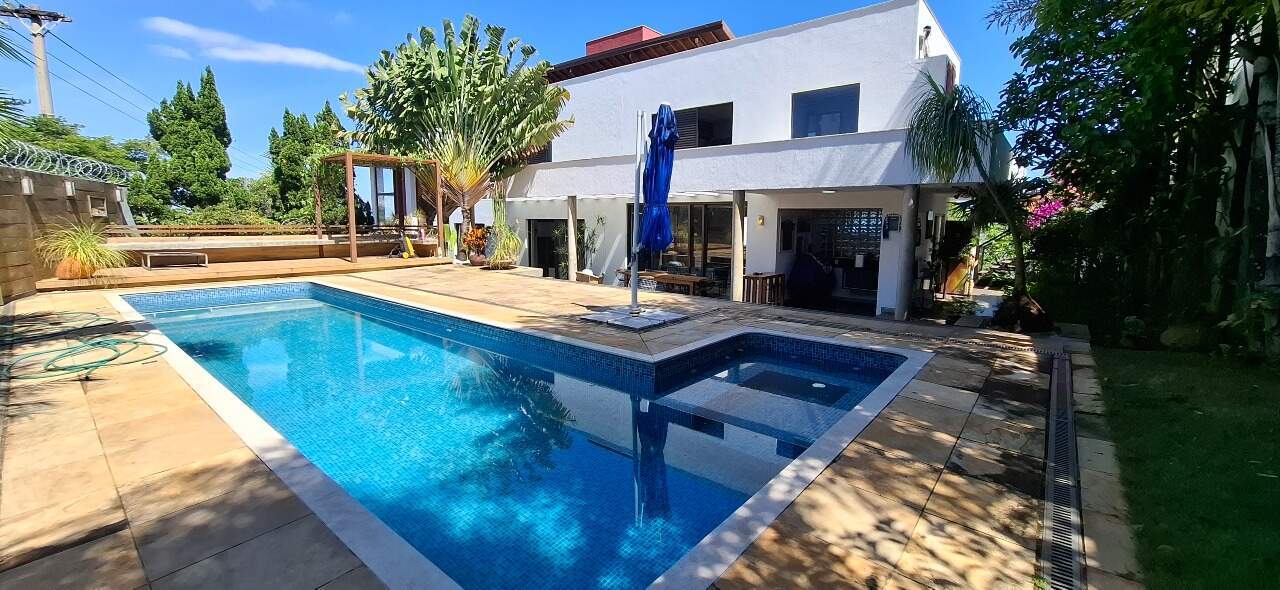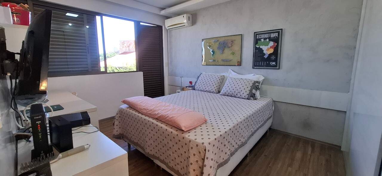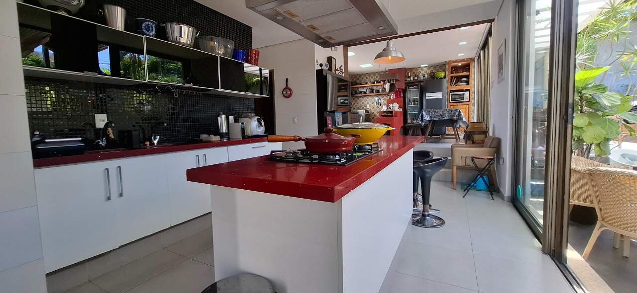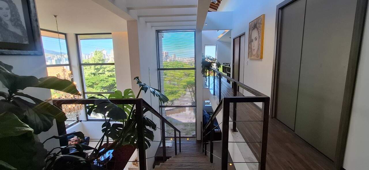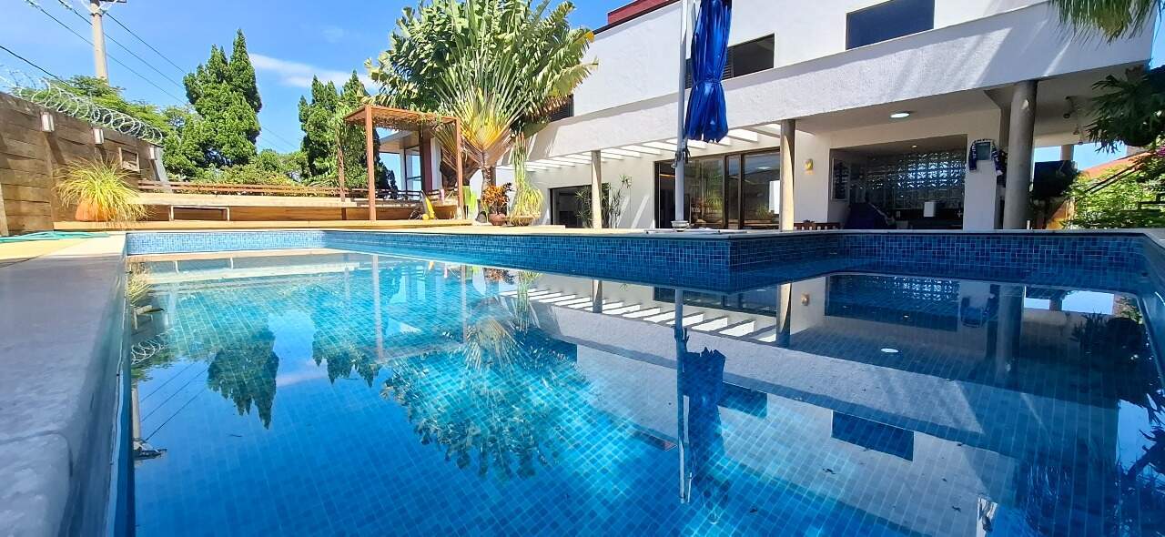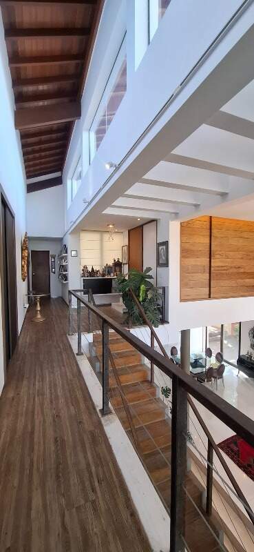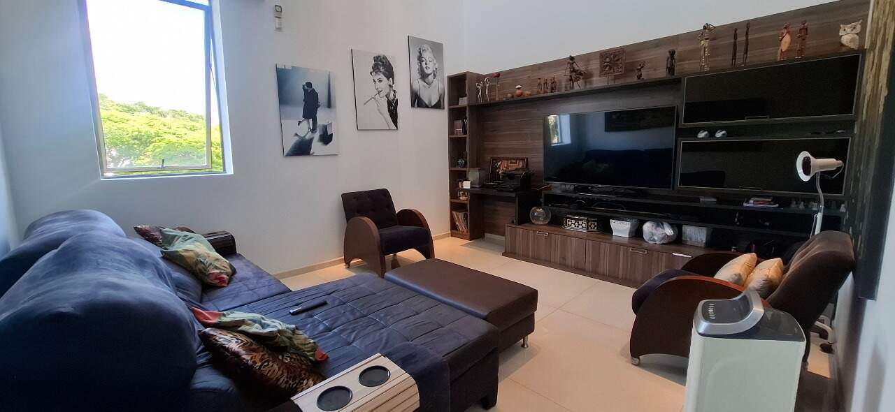 Sala para três ambientes, pé direito alto, piso em porcelanato, teto com rebaixamento em gesso com iluminação embutida, lavabo decorado, sala de tv com pé direito alto, piso em porcelanato, escadaria em alvearia com acabamento em marmorato, corrimão de ferro polido, Hall com teto rebaixado em gesso com iluminação embutida, área de circulação com armário, planejado, piso em vinilico, quatro quartos sendo três quartos quartos com suíte e varanda, banheiro dos três quartos com armário, espelho e box em blindex, piso em porcelanato, bancadas em mármore italiano dois quartos com ar condicionado, amplo quarto da suíte master, piso em vinilico, teto com rebaixamento em gesso com iluminação embutida, closet, banheiro da suíte master com ar condicinado, armário, espelho e box em blindex, bancada em mármore italiano, banheira com hidromassagem, academia, sauna, cozinha com teto rebaixado em gesso e iluminação embutida, piso em porcelanato, bancadas com armários planejados, ilha com fogão cook top, coifa, com armários planejado, despensa, espaço gourmet integrado com a cozinha, piso em porcelanato, teto rebaixado em gesso com iluminação embutida, bancada em granito e armário planejados, fogão a lenha., vestiário, lavanderia, DCE, vagas de garagem cobertas.