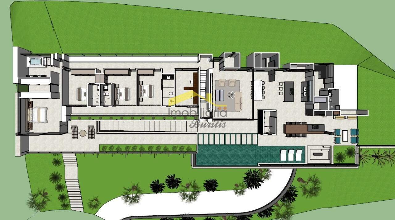 Linda casa linear de 580m² com 4 suítes sendo a master com closet, sala ampla para 3 ambientes, cozinha americana com ilha, espaço gourmet, piscina com borda infinita, ampla varanda, 7 vagas de garagem, localização privilegiada no condomínio, fundo para área de preservação, em fim de rua e com vista.