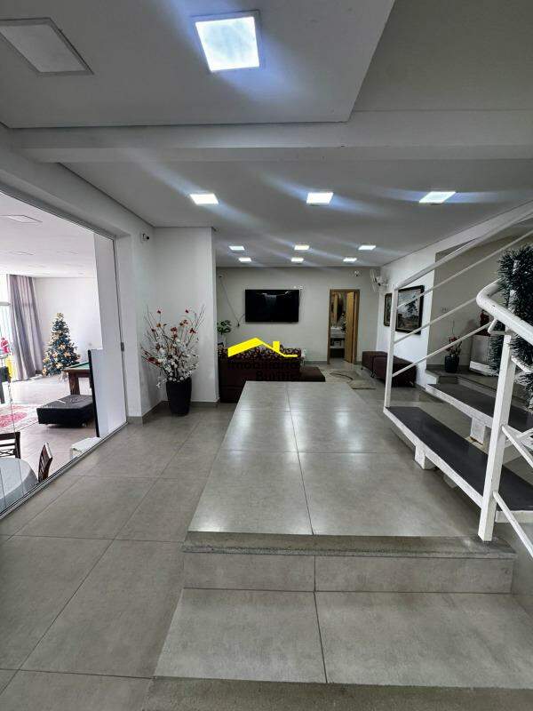 Ampla sala, sinuca, lavabo, sala de TV, sala de jantar, cozinha com armários planejados, despensa, área de serviço, DCE e área externa.