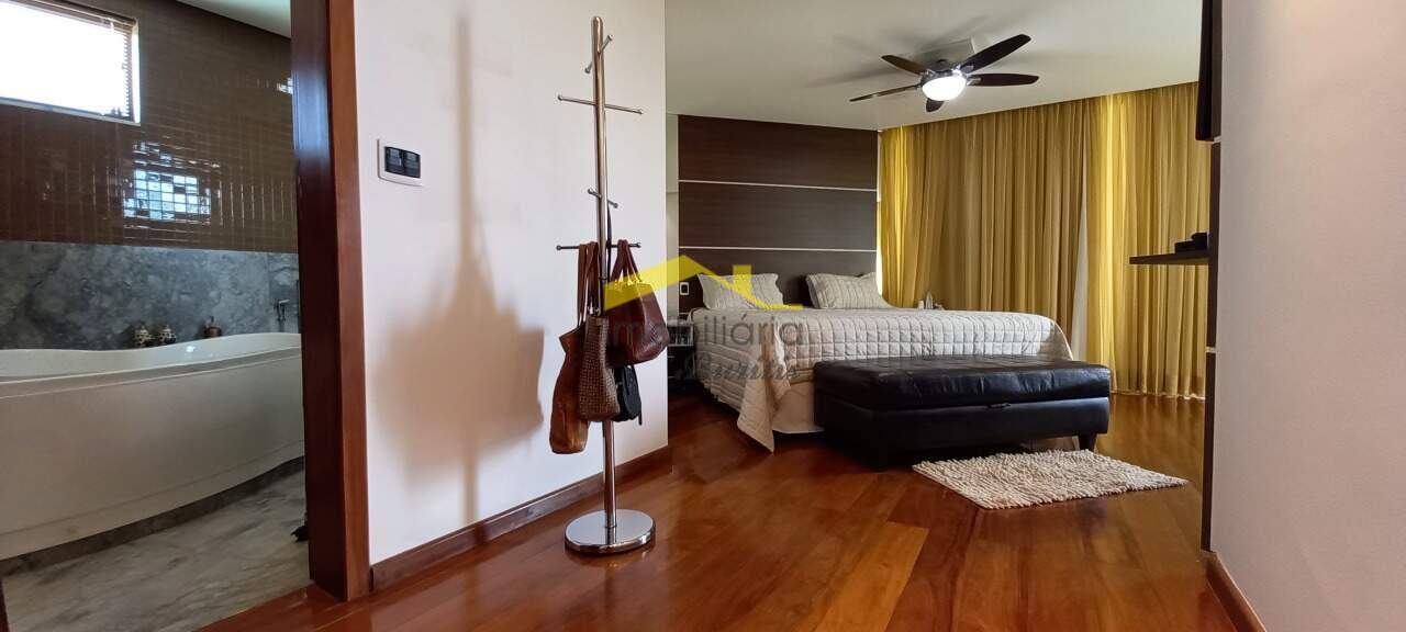 Casa com área total construida de 533m², varanda, linda vista panorâmica, ótimo acabamento de luxo, 4 salas, iluminação planejada, armários nos quartos, 6 suítes, cozinha americana, banho de empregada, quarto de empregada, área de serviço independente, despensa, banheira de hidromassagem, escritório, 6 vagas de garagem.