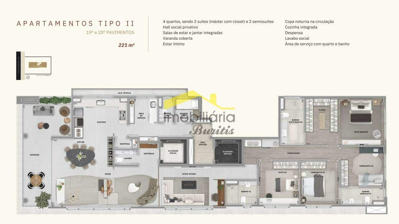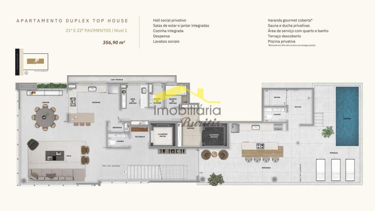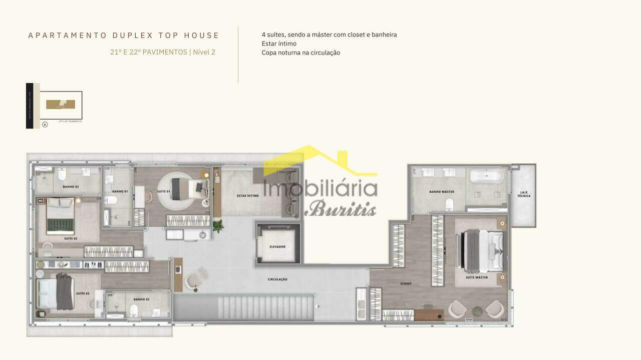 - Elevador privativo com hall exclusivo