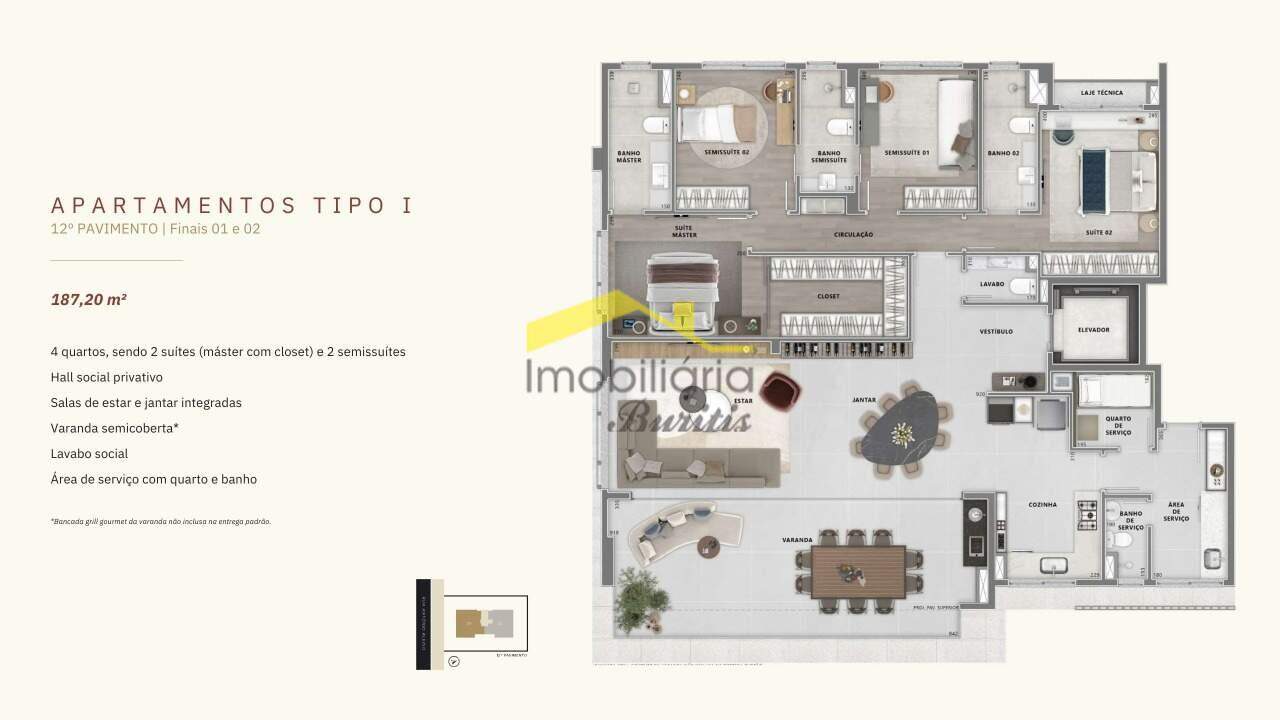 4 quartos (2 suítes + 2 semissuítes ou opção com 3 suítes)