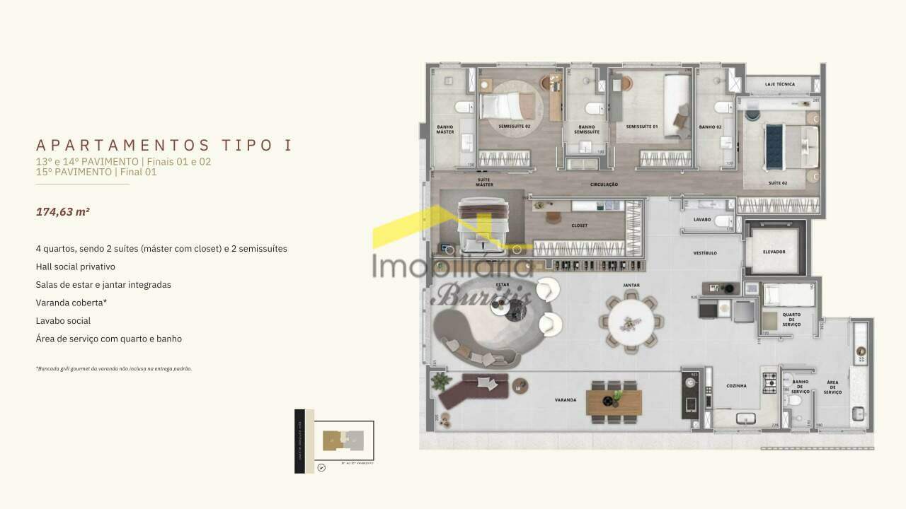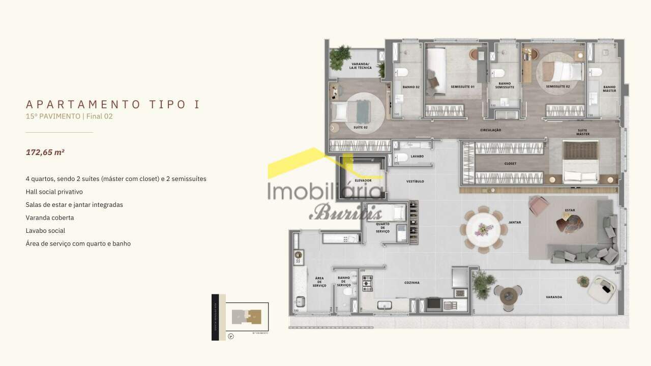 - 4 quartos (opções com 2 suítes + 2 semissuítes ou 3 suítes)