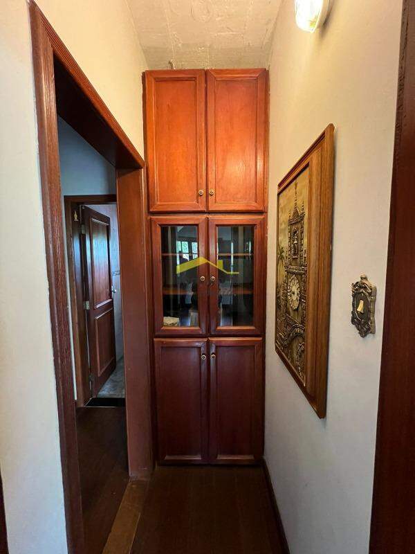 Há um pequeno lance de escadas para acesso à lavanderia e dependências de empregados com área de serviço e garagens.