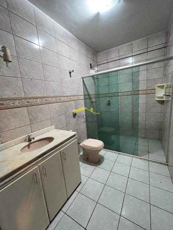 Banhos suíte e social com as mesmas características: Revestimentos em cerâmica, box e armários sob bancada em granito.