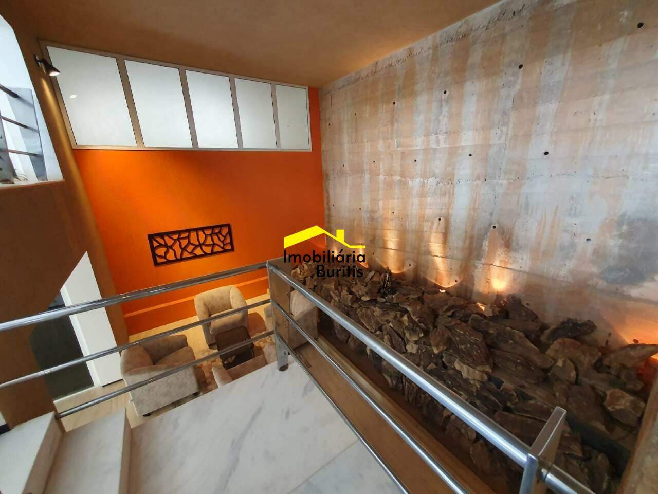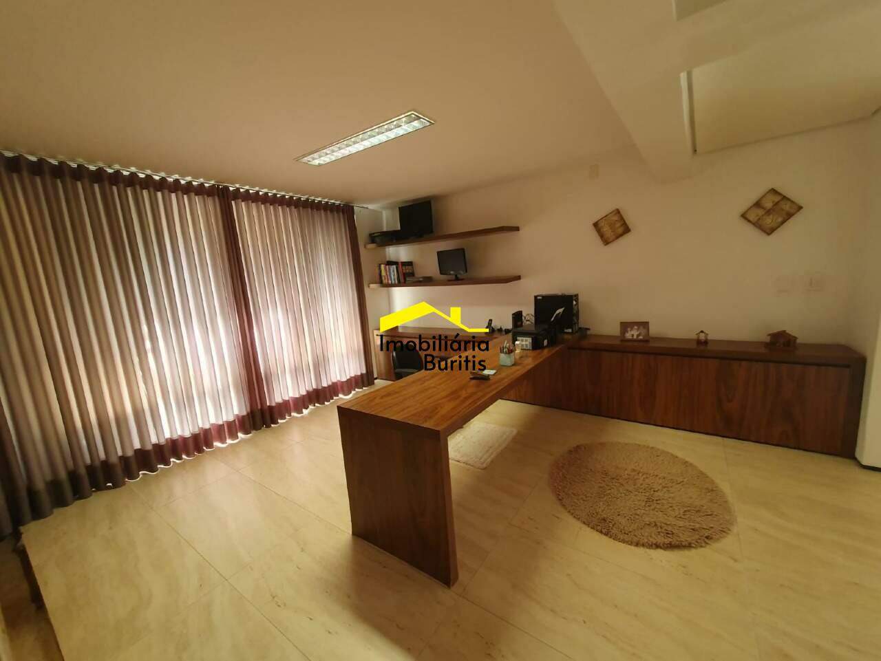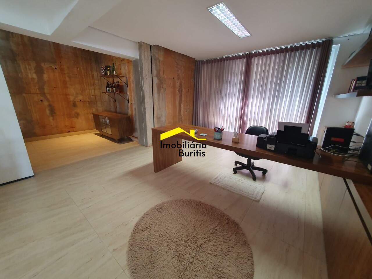 Salão para 5 ambientes, escritório, lavabo, cozinha de apoio, lavanderia e DCE.