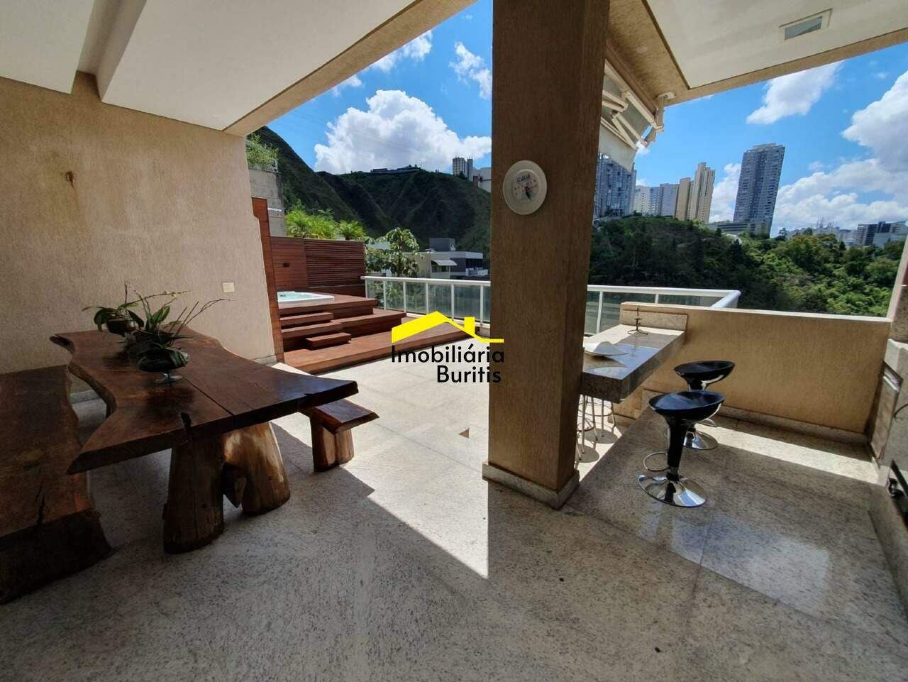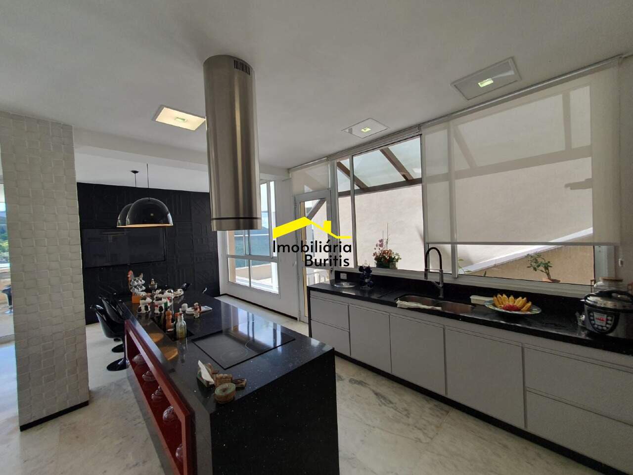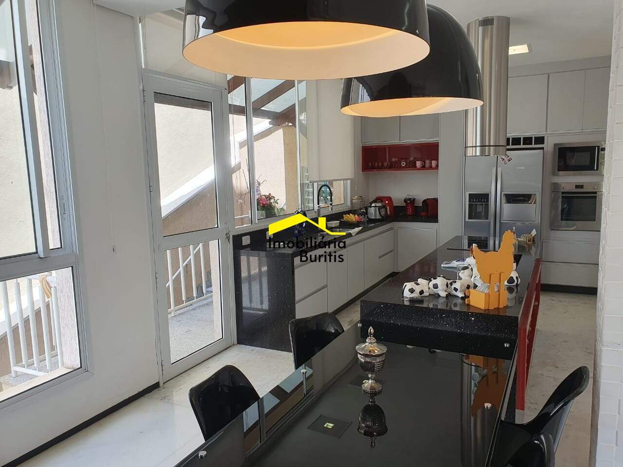 Salão para 3 ambientes, lareira, lavado, sala de jantar, jardim de inverno, cozinha americana, espaço gourmet com churrasqueira, sauna e hidro para 8 pessoas.