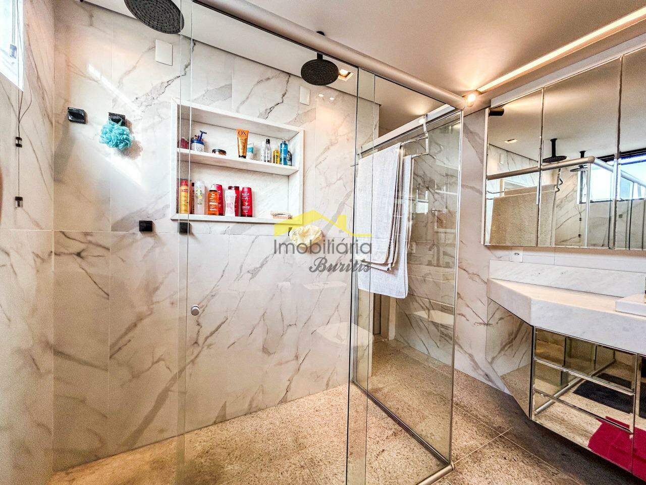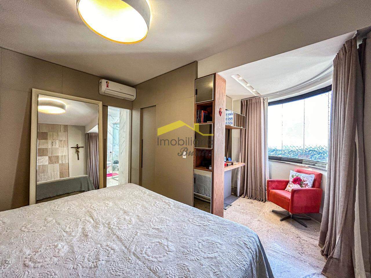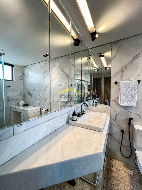 Cada detalhe neste apartamento de 5 suítes foi cuidadosamente pensado para combinar estética refinada com funcionalidade máxima. As suítes, generosamente proporcionadas, oferecem retiros pessoais tranquilos, cada uma com seu próprio banheiro elegante, acabamentos de primeira linha e armários embutidos espaçosos. A suíte máster, particularmente, é um santuário de luxo, com amplo closet e um banheiro sofisticado que serve como um spa privativo.