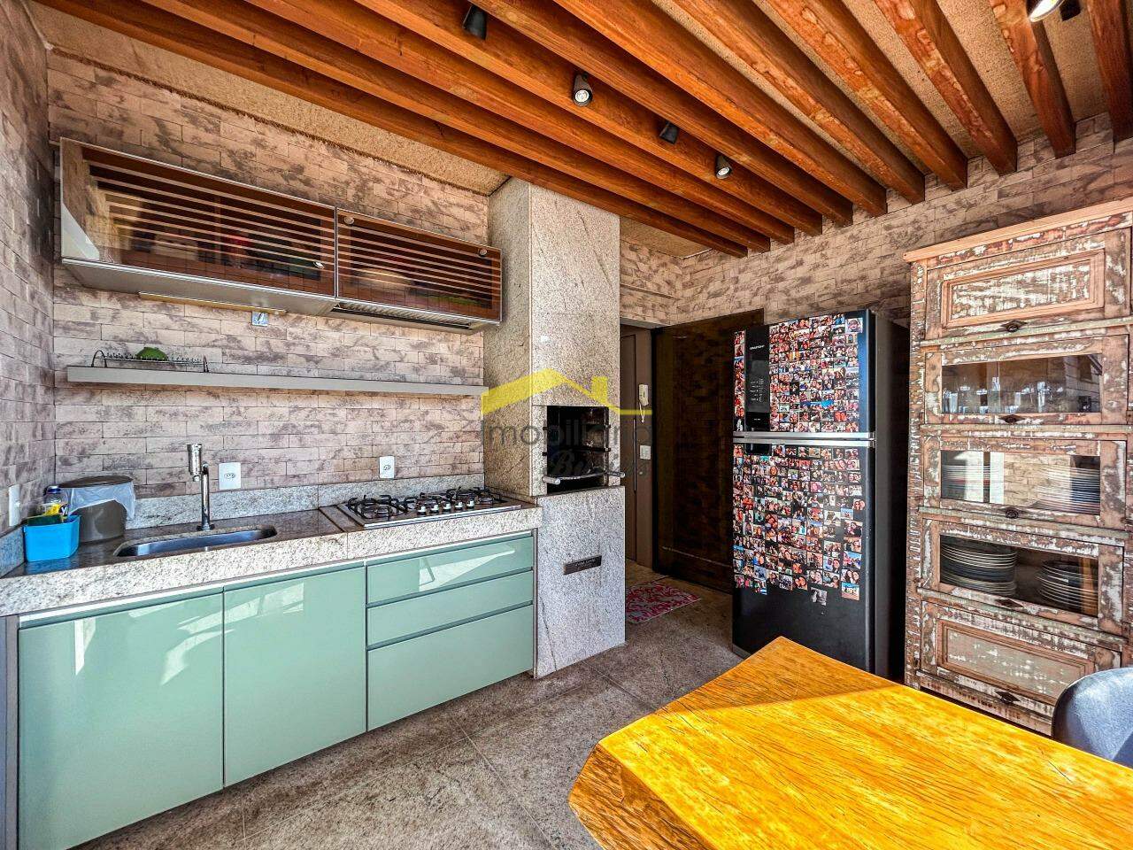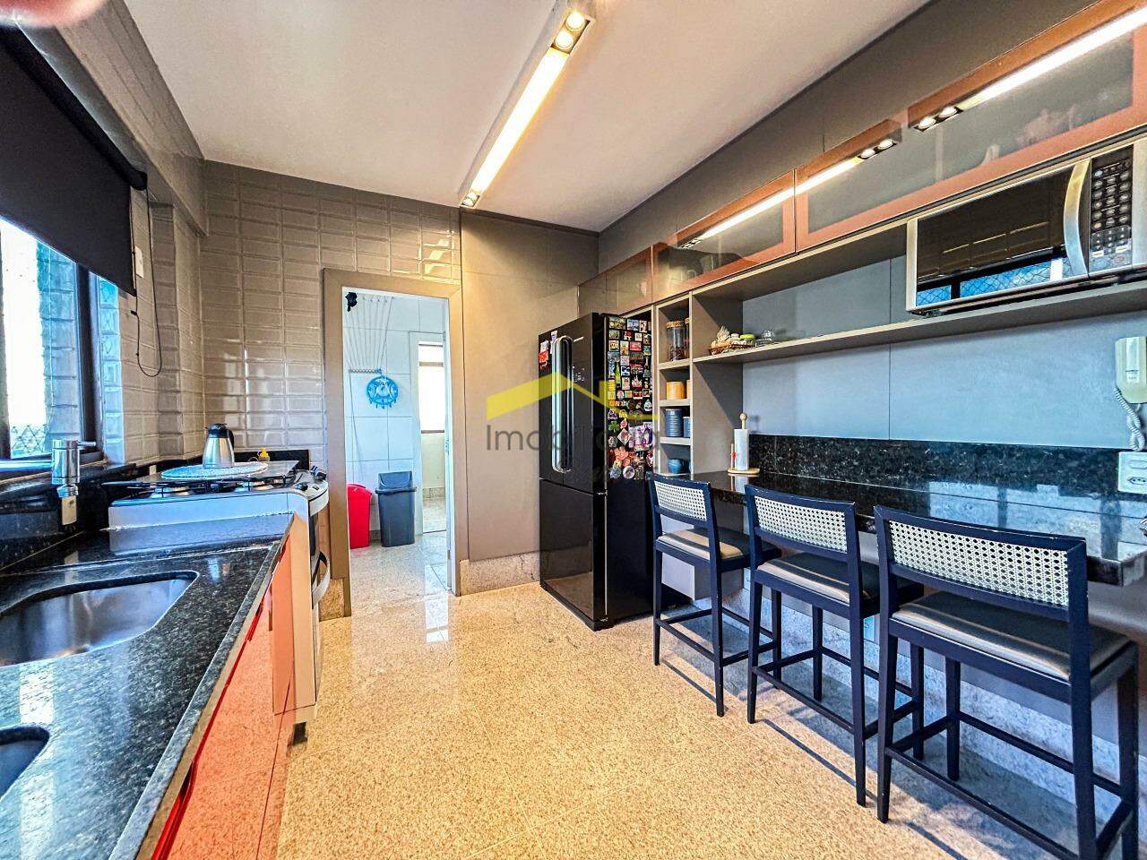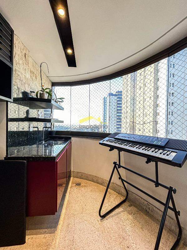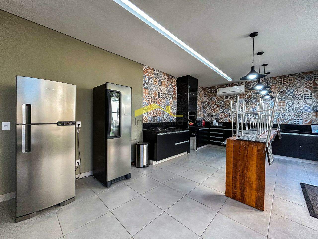 A cozinha, um verdadeiro sonho para os amantes da culinária, é equipada com eletrodomésticos de última geração, bancadas em materiais nobres e amplo espaço de armazenamento. A área de serviço é completa, incluindo dependência completa de empregada (DCE), garantindo funcionalidade e conforto para o dia a dia.