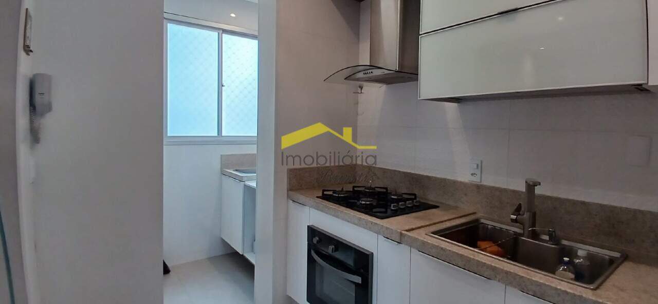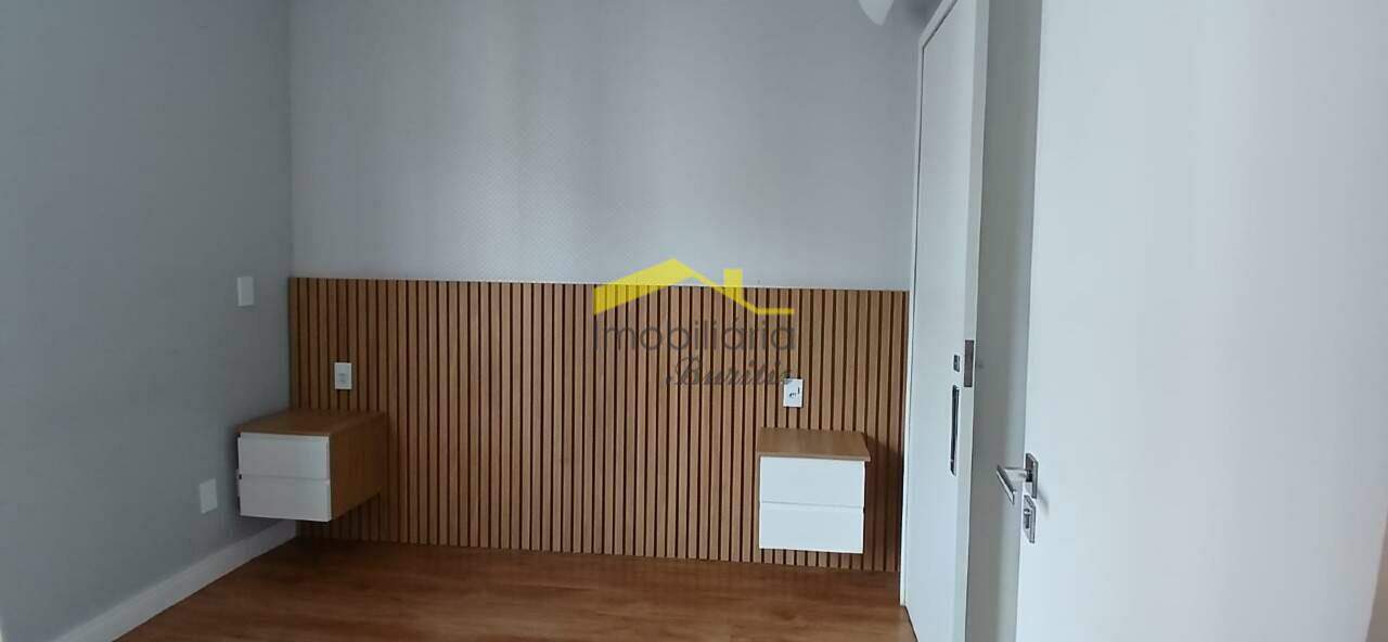 Sala para 2 ambientes, iluminação planejada, painel de madeira, piso em vinilico; 3 quartos com armários planejados, sendo uma suíte; banho com armários, box; cozinha toda planejada, área de serviço.