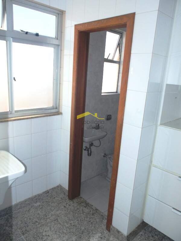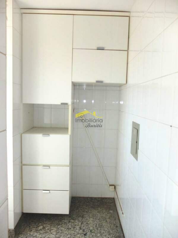 Área de serviço independente com piso em granito, armário e banheiro de empregada.