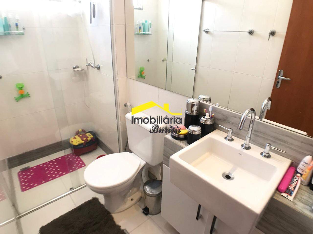 - Banheiros (suíte e social) com bancada em granito, box blindex, armários e espelhos amplos.