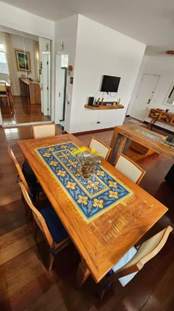 Sala espaçosa para até 3 ambientes, com teto rebaixado em gesso, projeto de iluminação e piso em tábua corrida;