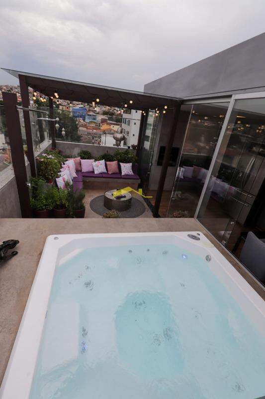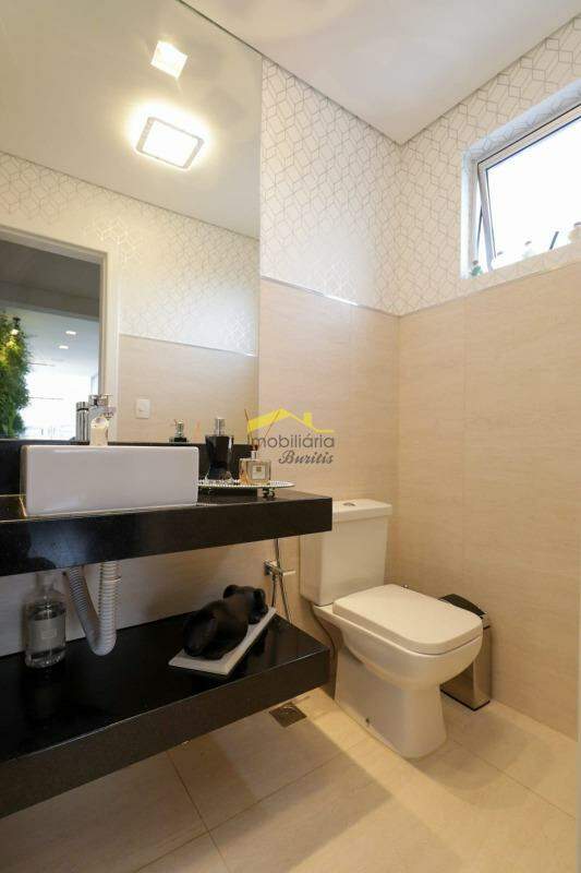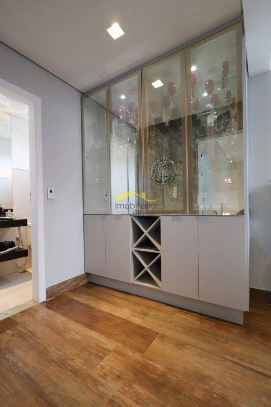 2 º Piso: sala ampla, iluminação embutida, com painel em porcelanato, moveis planejados e ar condicionado; corredor com cristaleira personalizada; 1 lavabo; 1 escritório, com moveis embutidos e ar condicionado; área gourmet, com churrasqueira e cozinha montada, painel em porcelanato e armários; som acústico ambiente embutido; terraço com pequena parte descoberta, pergolado com iluminação planejada e telhado de vidro, deck em madeira, ducha e spa com ofurô.