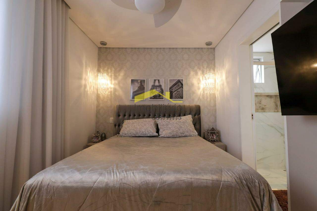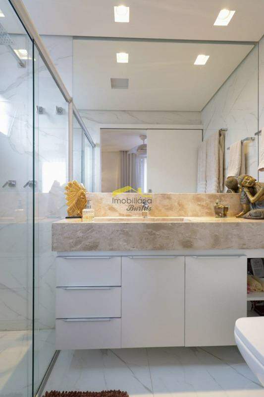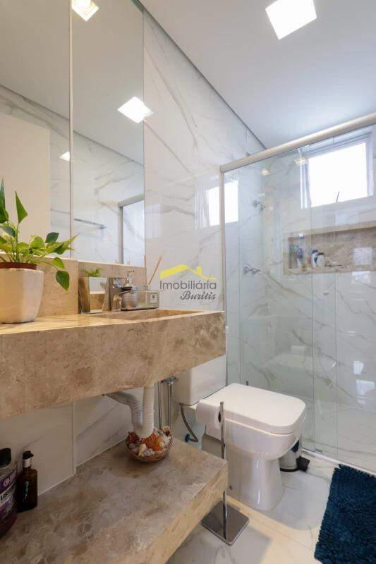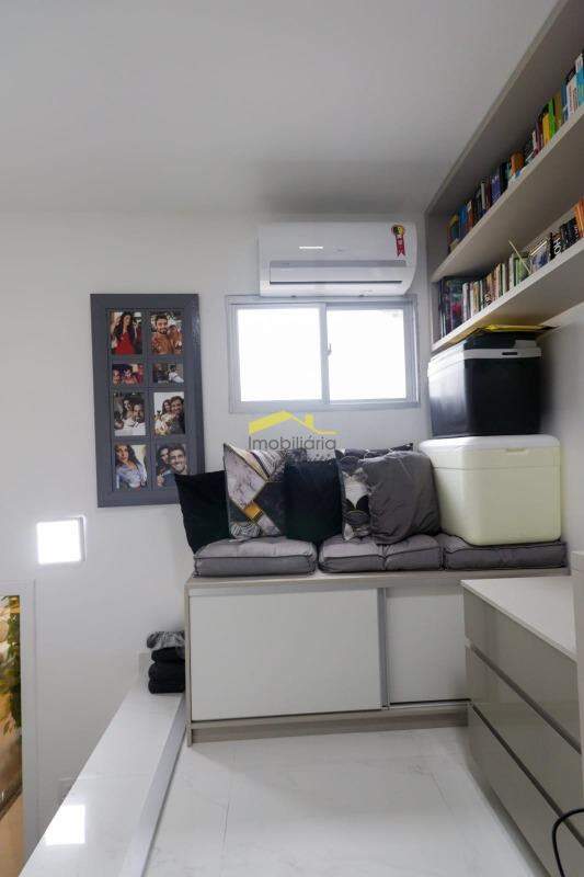 1º Piso: sala para 2 ambientes, iluminação embutida planejada, móvel planejado e painel abaixo das escadas, painel mdf próximo ao corredor; 3 quartos, com armários, sendo 1 quarto com ar condicionado e suíte, armário e box; 1 banheiro social, com armário e bancadas em mármore; cozinha com armários planejados, toda montada; área de serviço individualizada, com armário.
