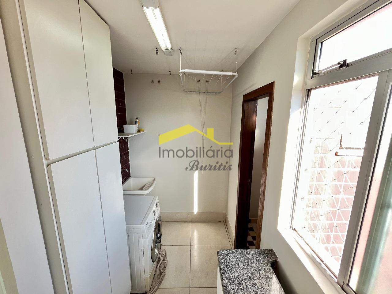 Área de serviço com lava-roupas frontal, tanque, bancada e lavabo;
