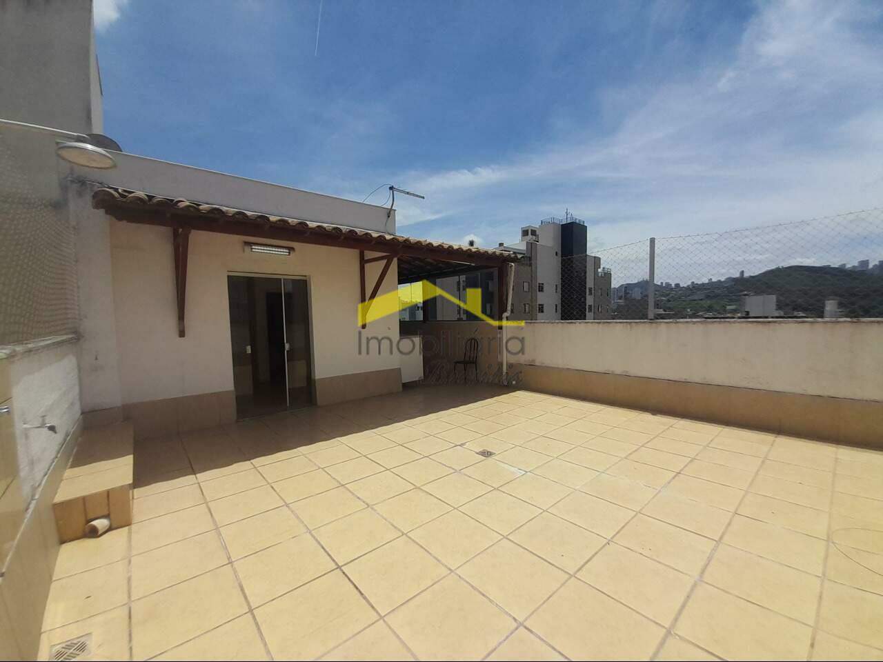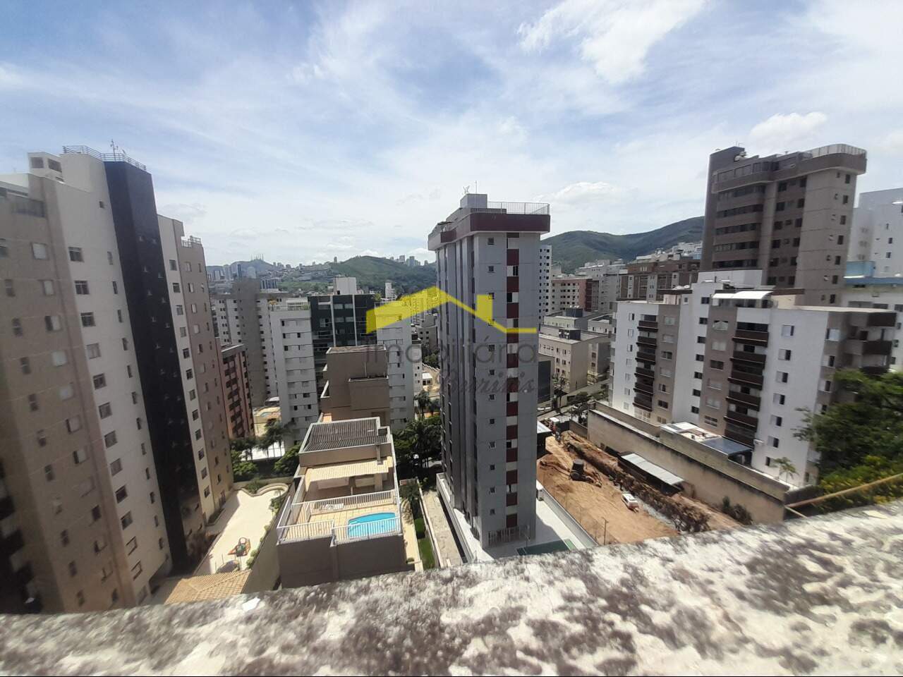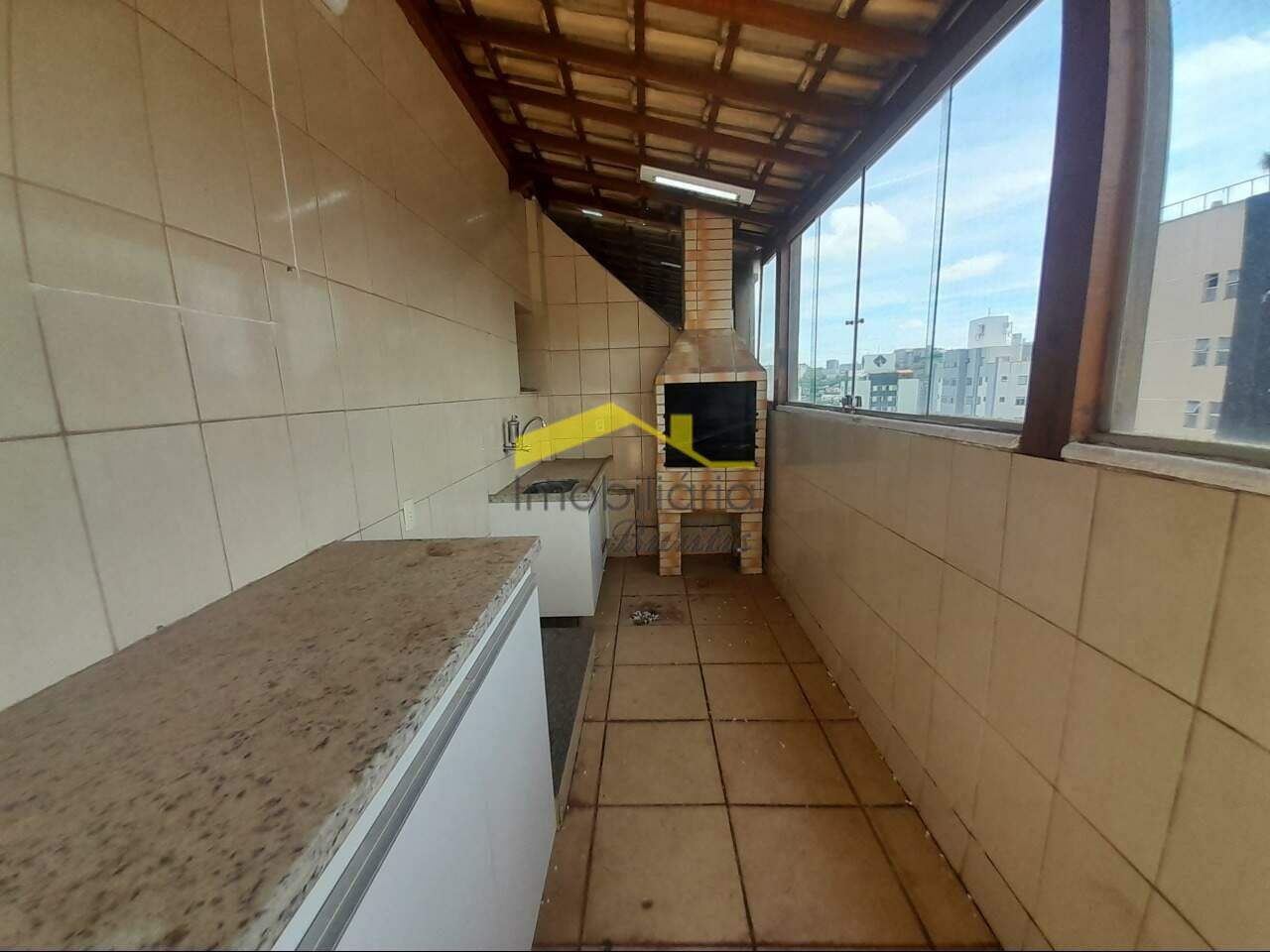 Sala ampla, lavabo; área externa com armário, churrasqueira e vista.
