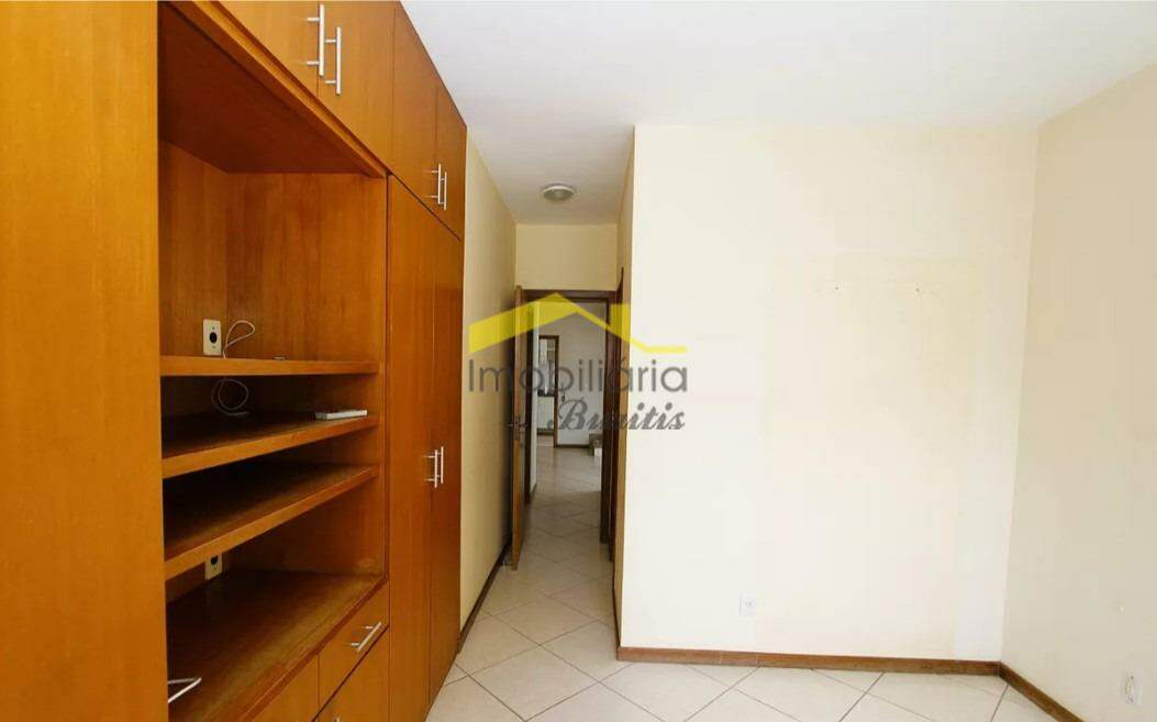Suíte com armários de madeira de alta qualidade, ar-condicionado split inverter e banheiro com acabamento em granito e blindex.