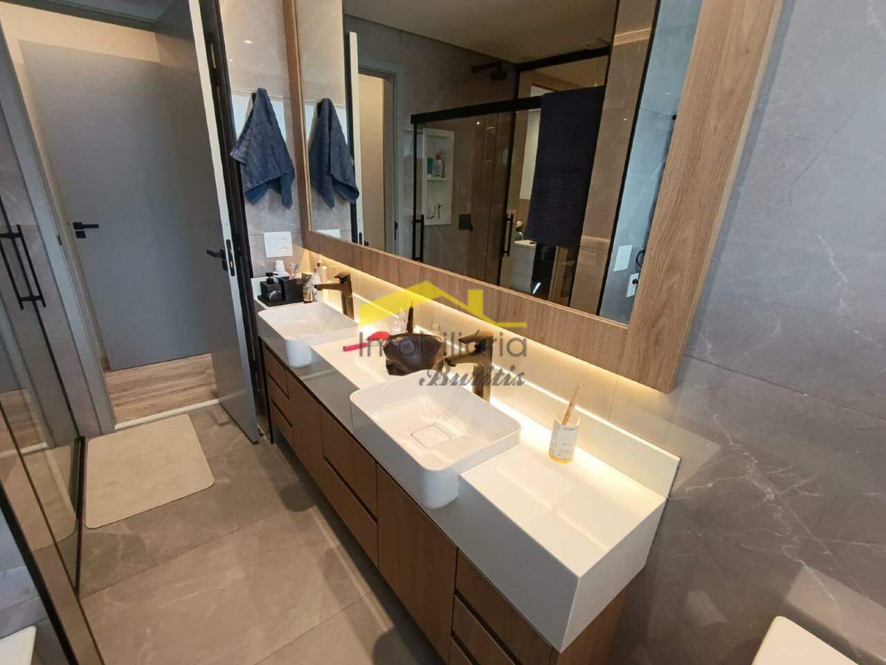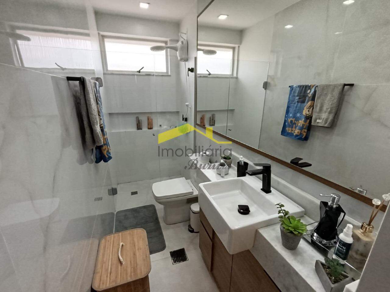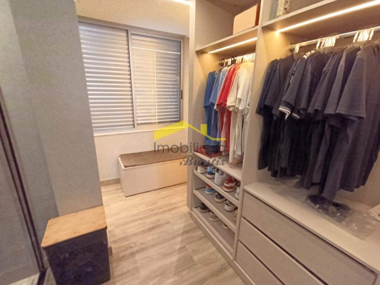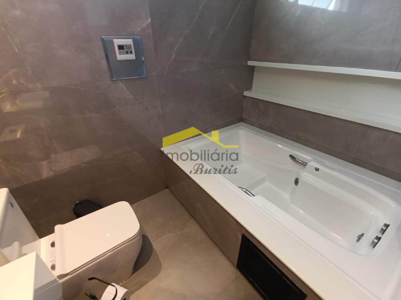 Segundo pavimento: 4 quartos com armários, sendo três em mármore e 1 em laminado de madeira. Banheiro social em porcelanato com bancada em mármore, armários, box e espelho. Rouparia. Banheiro da suíte em granito, bancada em granito, armário, box, espelho e banheira de hidromassagem. Quarto suíte com closet e varanda.
