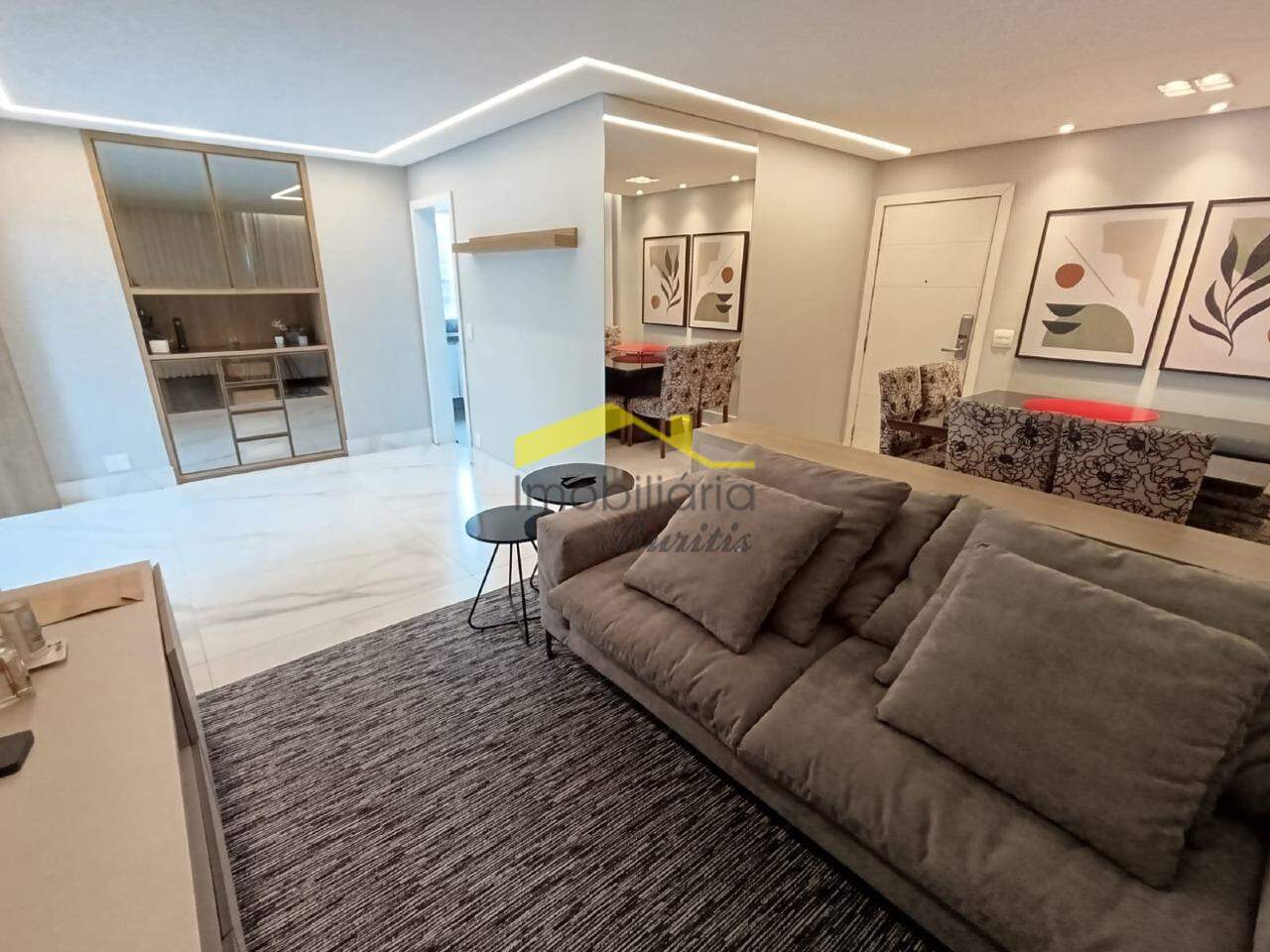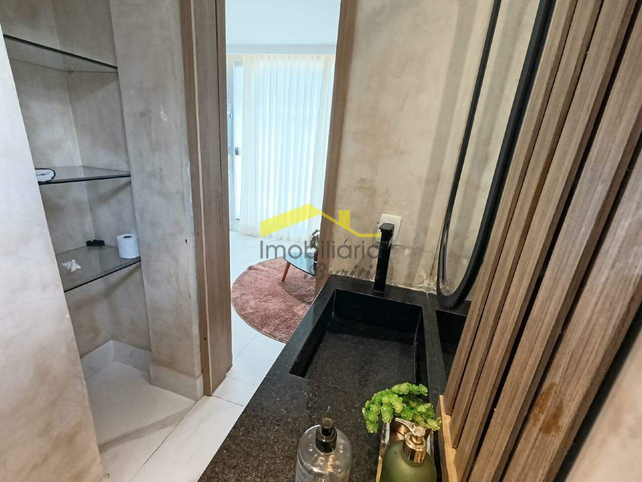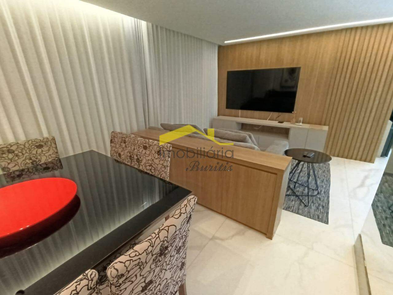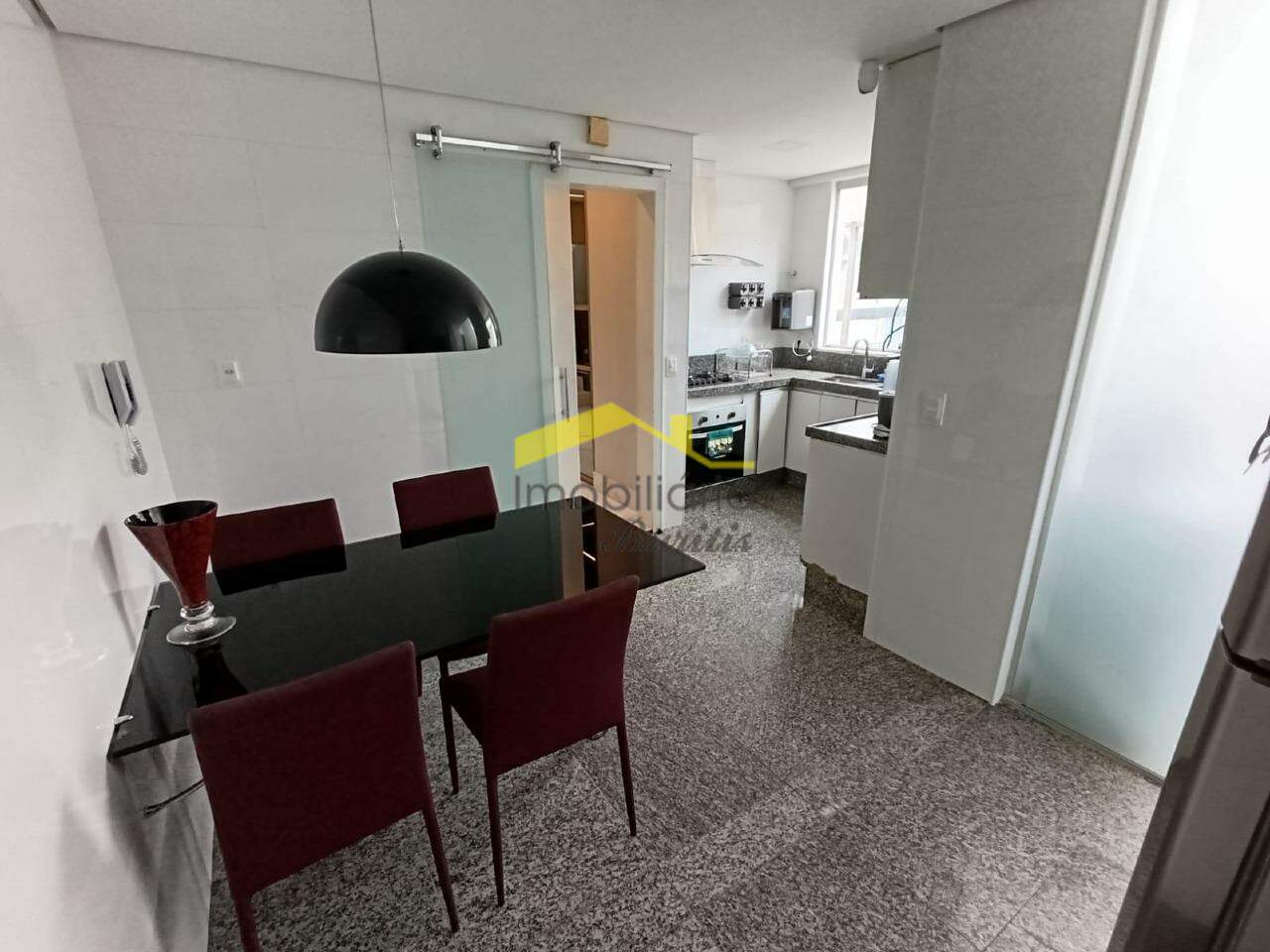 Primeiro pavimento: Sala para 3 ambientes em porcelanato. Rebaixamento de teto com luzes indiretas. Lavabo em porcelanato com bancada em bojo de pedra. Área externa em porcelanato com piscina. Espaço gourmet com fogão de ilha, bancadas em granito e armários. Vista definitiva. Ampla cozinha em granito com bancadas em granito, armários e mesa. Área de serviço em granito, área externa e DCE.