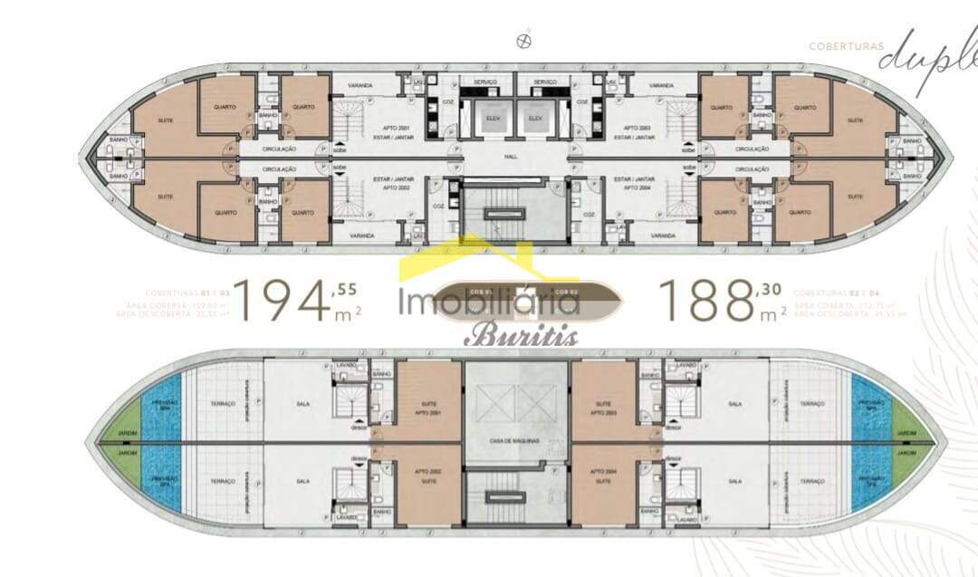 Cobertura com 4 dormitórios, duas suítes e duas semi-suítes, sala com varanda. cozinha, terraço, previsão para SPA e 3 vagas de garagem.