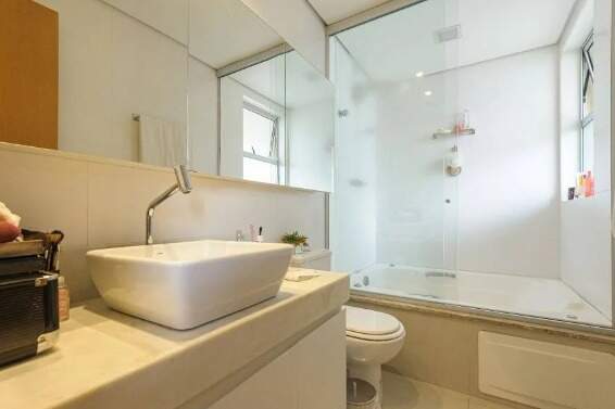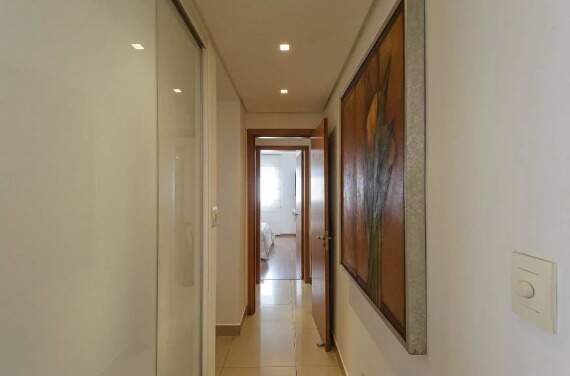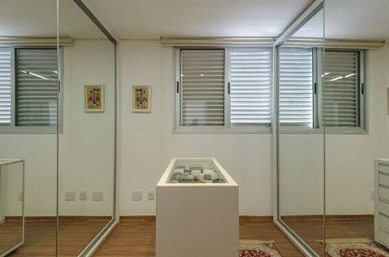 A parte íntima acomoda a rouparia e os 3 quartos, com destaque para a vasta suíte que converteu um dos quartos em um closet dos sonhos! Ademais, 1 banho social propõe o uso também como lavabo e o terceiro quarto abriga um escritório.
