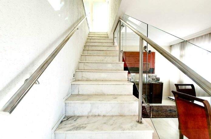 No segundo andar, há uma sala para dois ambientes, com piso em mármore, um quarto adicional e um banheiro com piso e bancada em granito. Mas o destaque fica por conta da área externa, com um excelente espaço gourmet equipado com churrasqueira e fogão a lenha, além de uma ótima área livre com vista panorâmica.